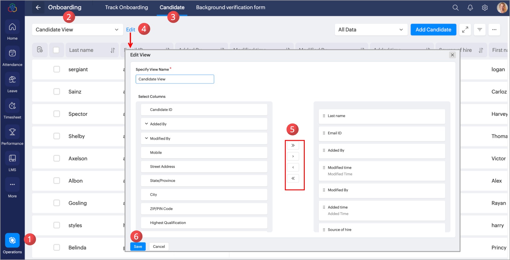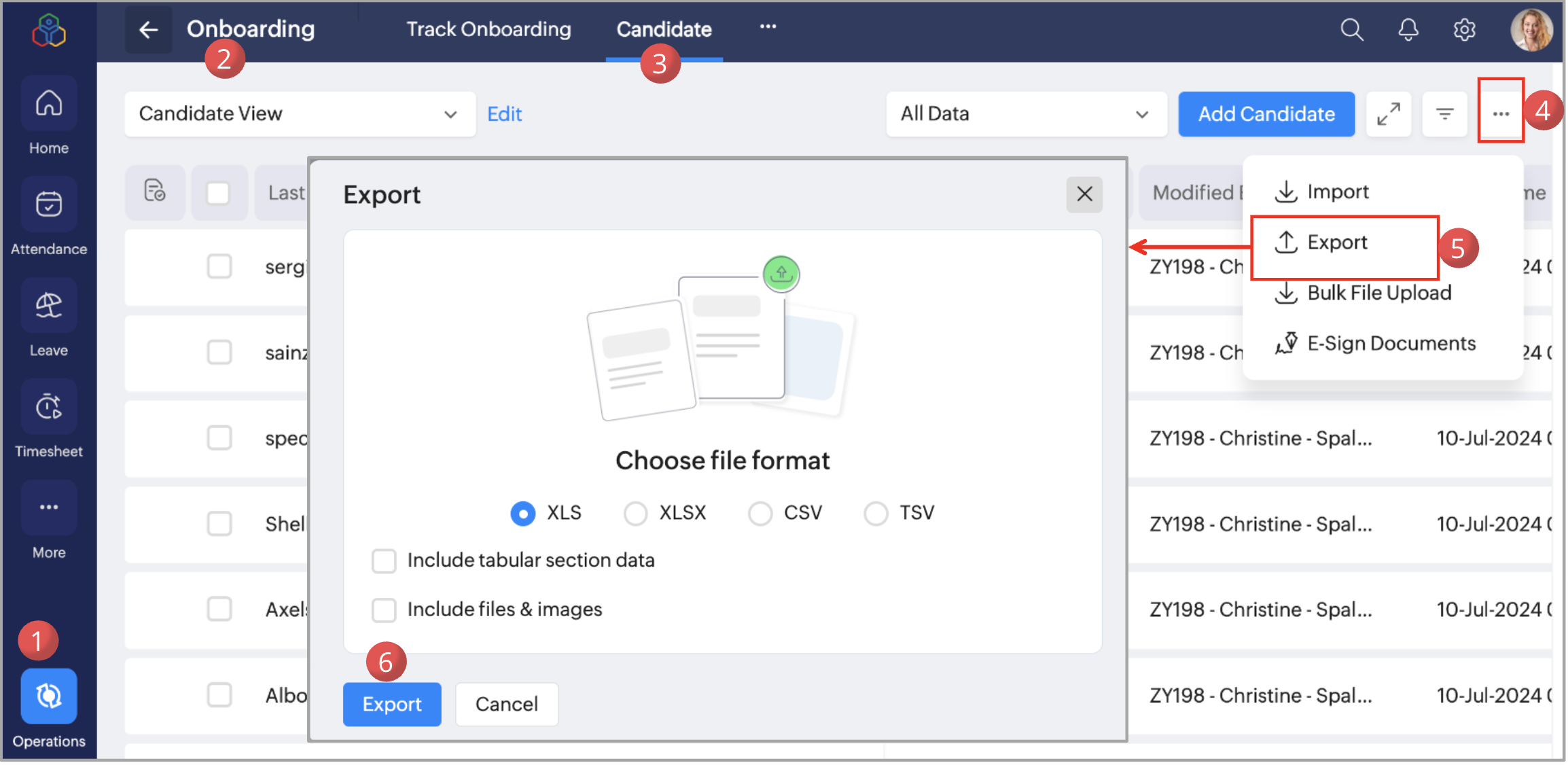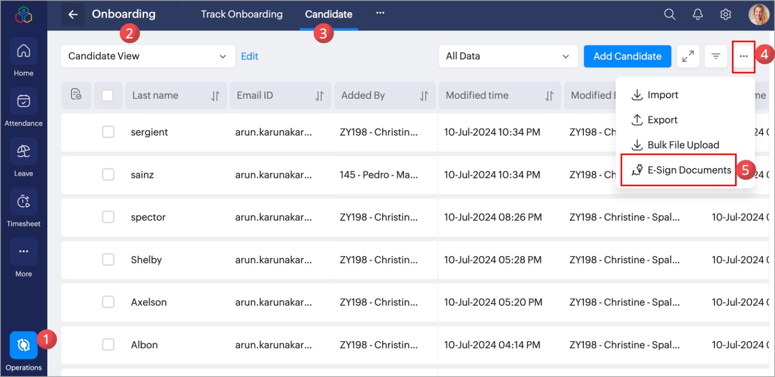 - Navigate to Operations > Onboarding > Candidate.