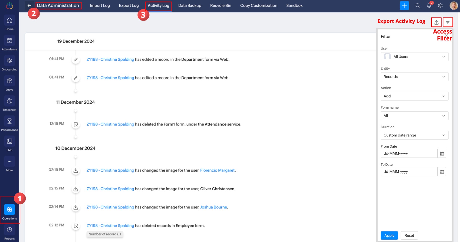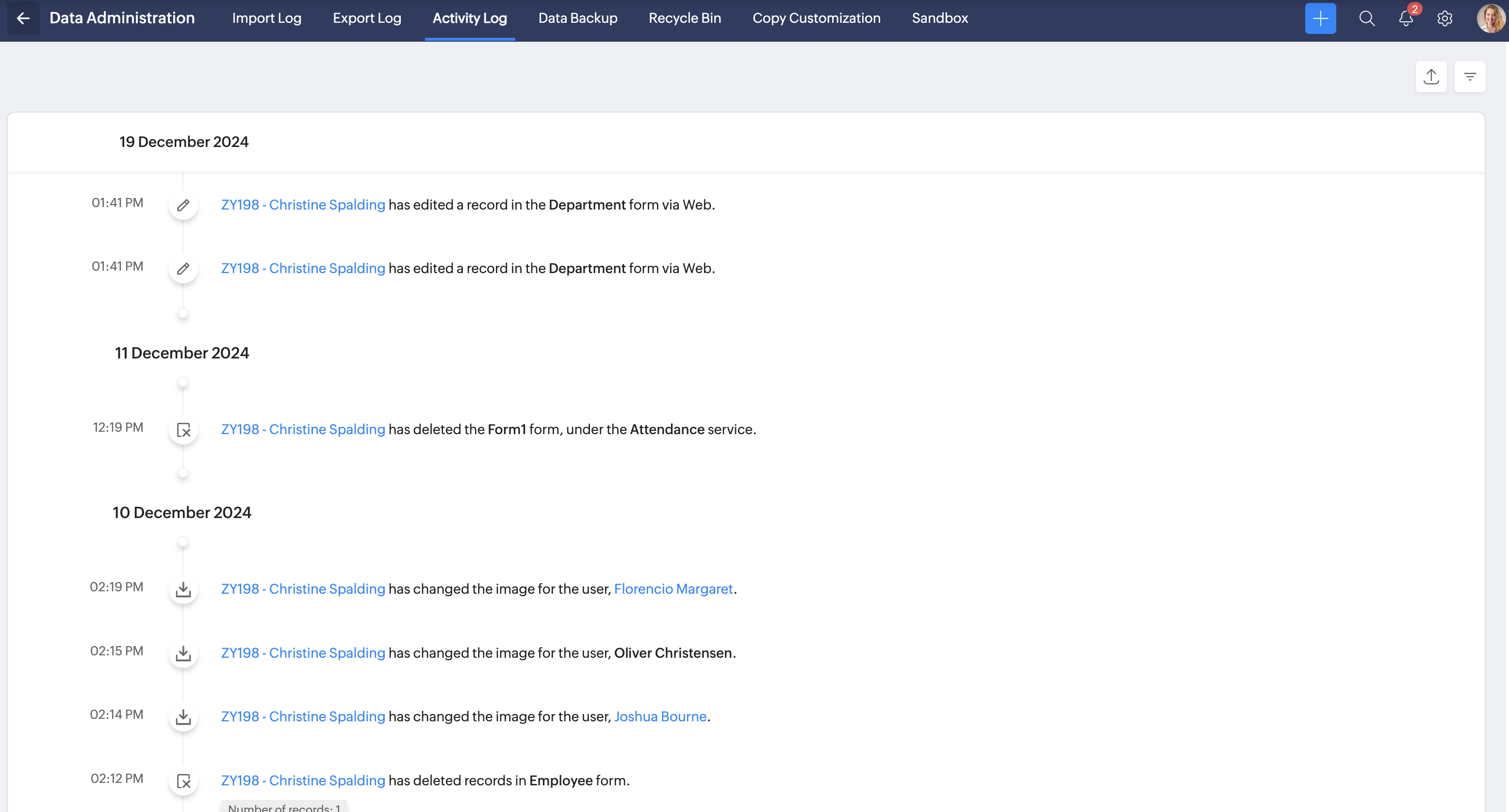 Activity Log | Administrator Guide | Zoho People 5.0 | Zoho People Help