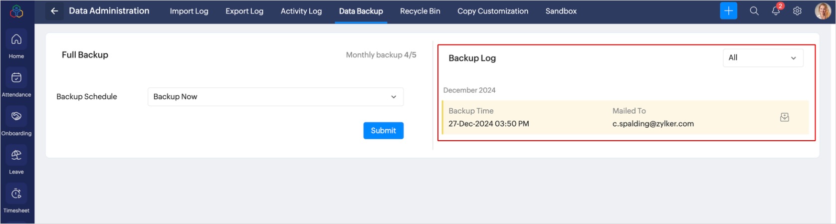 Once the backup is successful, a download link will be sent to your email address. Only the last 7 backups are available for download.