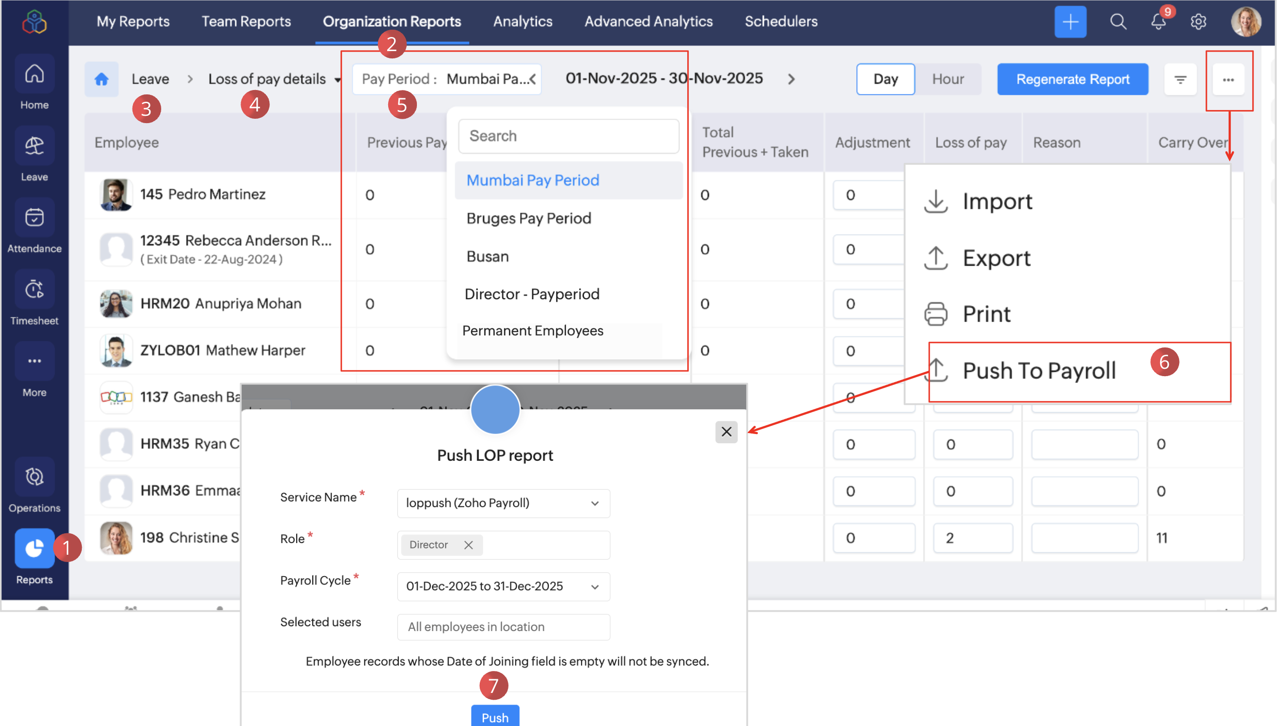 - The LOP data of employees in the selected pay period type, Location, role or employment type based will get pushed to Paybooks.