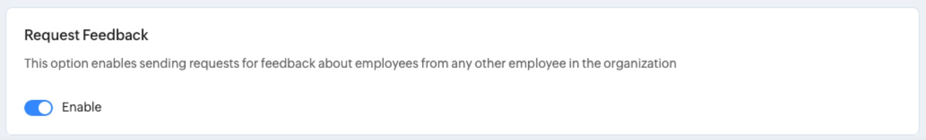 Enable this option to allow employees to request feedback from any other employees in the organization. Additionally, Managers can request feedback on their reportees.