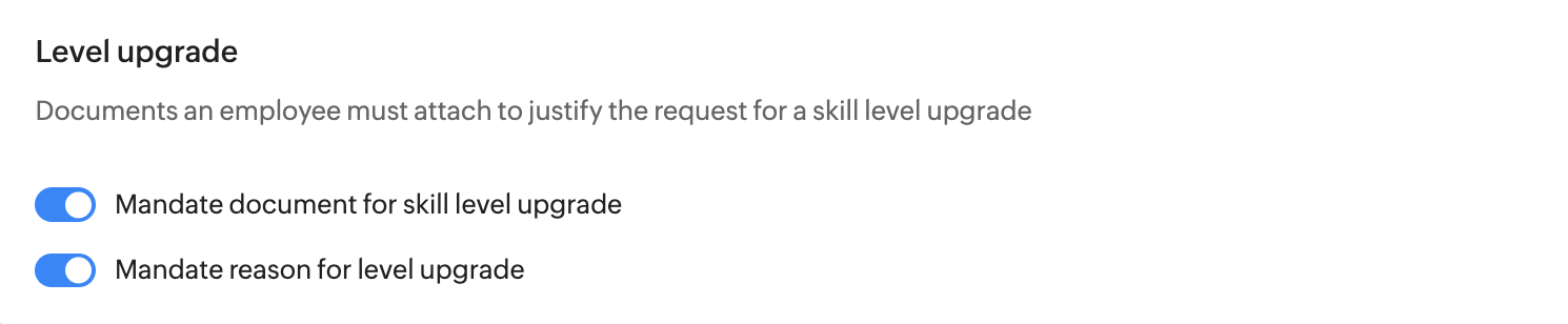 Mandate document or reason when an employee raises a skill set level upgrade.