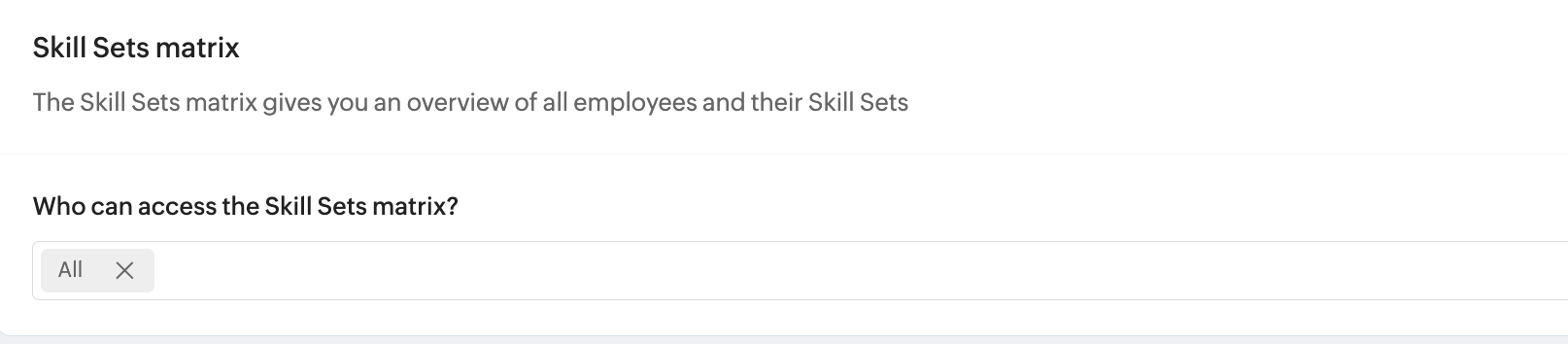 Skill Matrix feature gives an overview of employees and their skill set levels. Specify who has access to view skill matrix here.