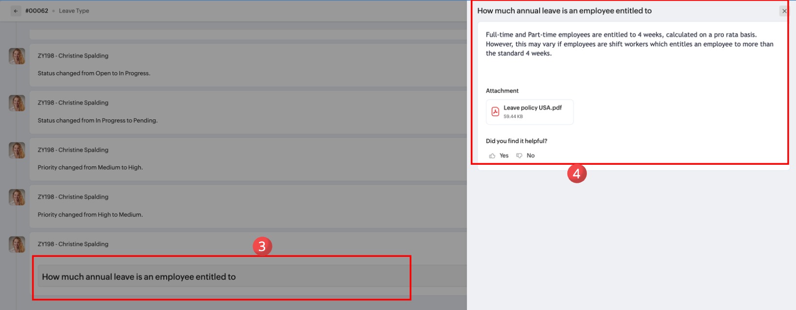 Feedback setting in HR Help Desk, allows you to set up feedback system to improve your employee query resolution experience. Enabling this setting allows your employees to provide feedback on the agents who resolved their query. Set up HR Help Desk ...