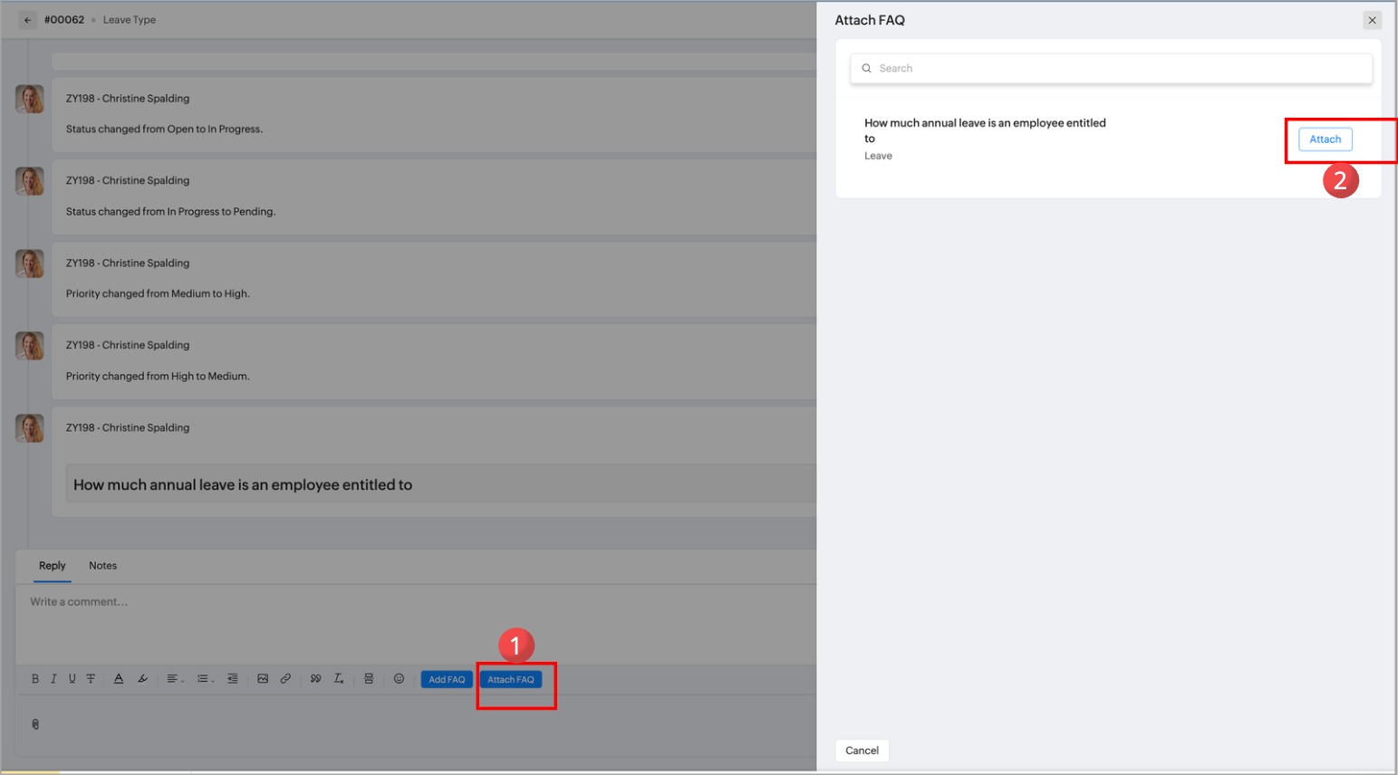For more details on adding and attaching FAQ, refer to adding and attaching FAQ.