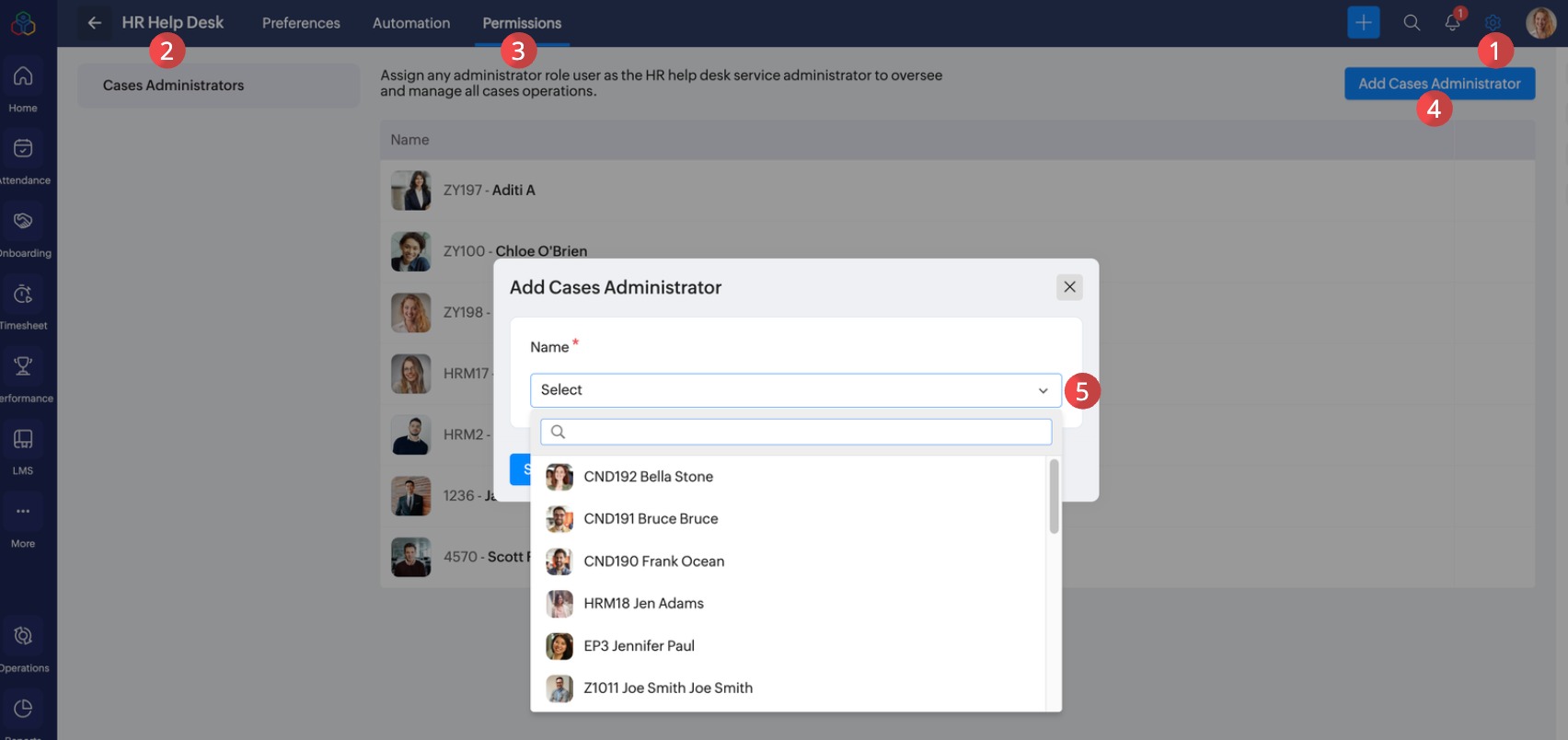 What is HR Help Desk Operations in Zoho People? HR Help Desk in operations is where admins and agents handle employee case requests. It lets them view, assign, and resolve cases from one place. You can also add a case for another user under the ...