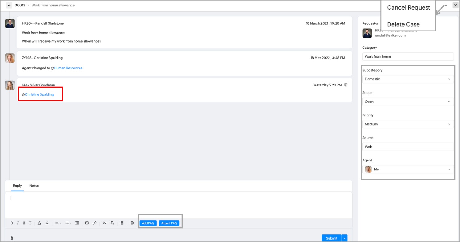 Administrators and agents can raise case request for self or they can raise for other employees in the organisation. Submitting a Case Request To submit a case request for self or other employees: Before raising a case request, you can search and ...