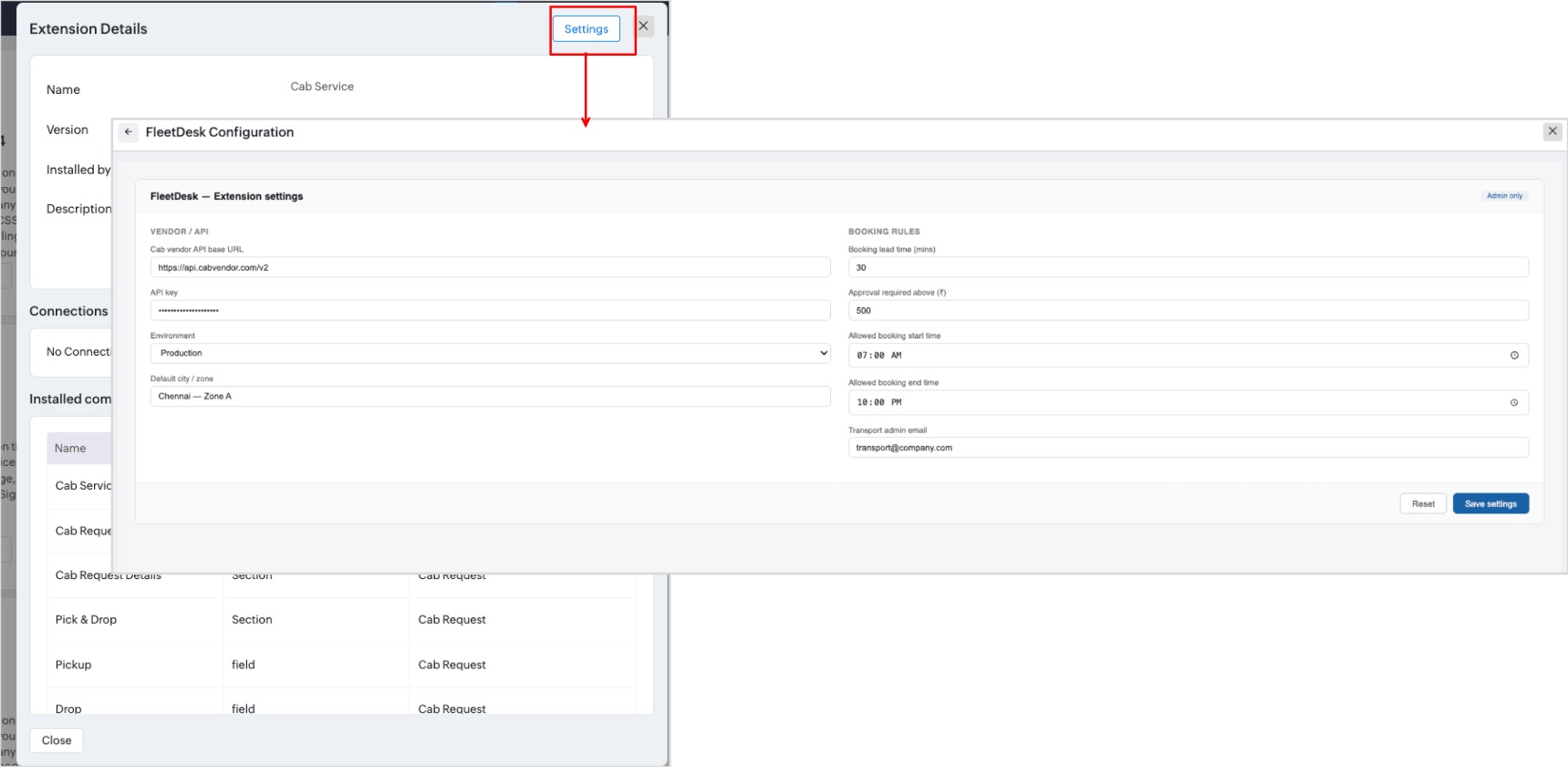 When an extension is installed in Zoho People, it may require certain configurations as listed below. Instead of hardcoding these values, the Extension Settings Widget allows administrators to configure and manage them easily through the user interface.