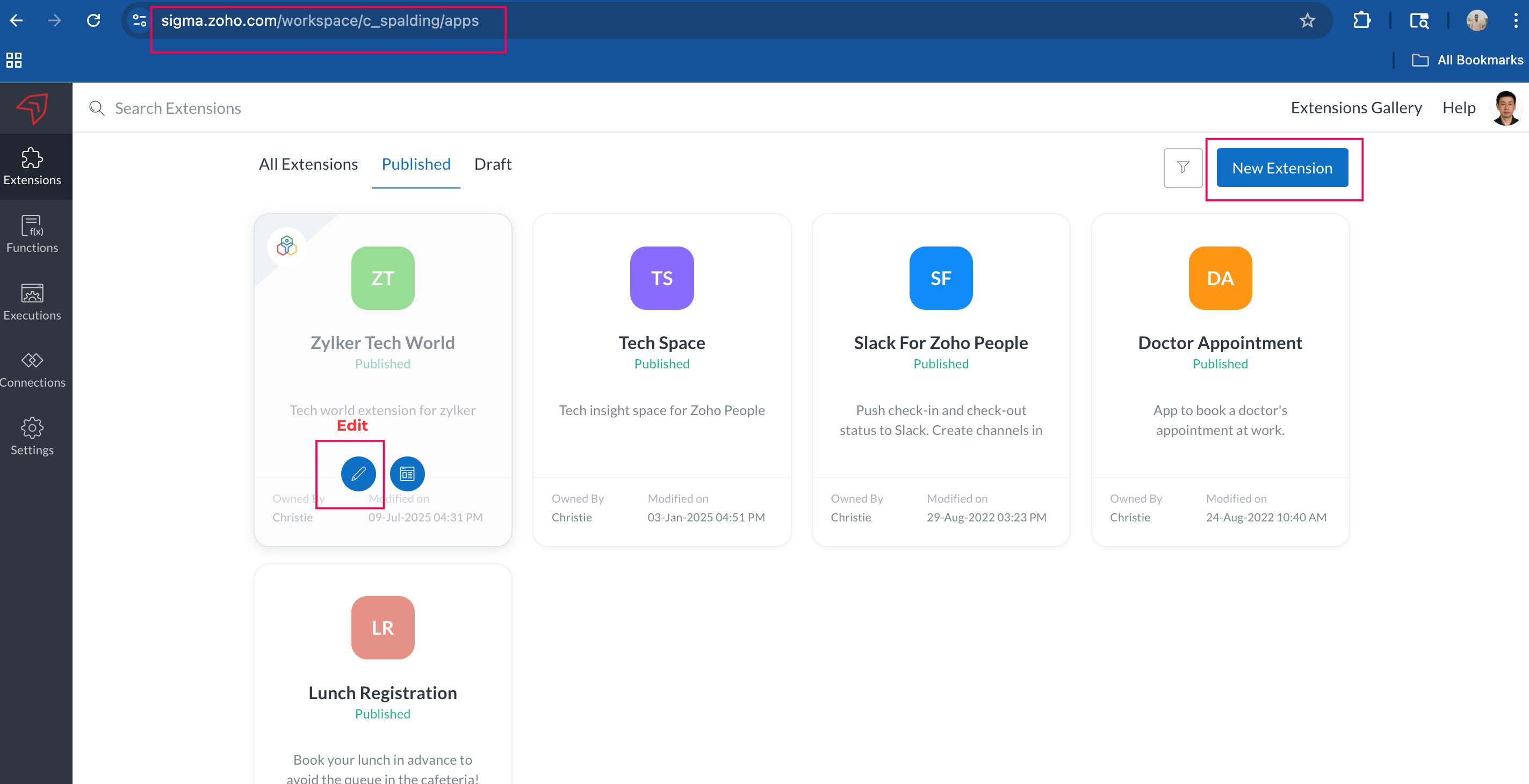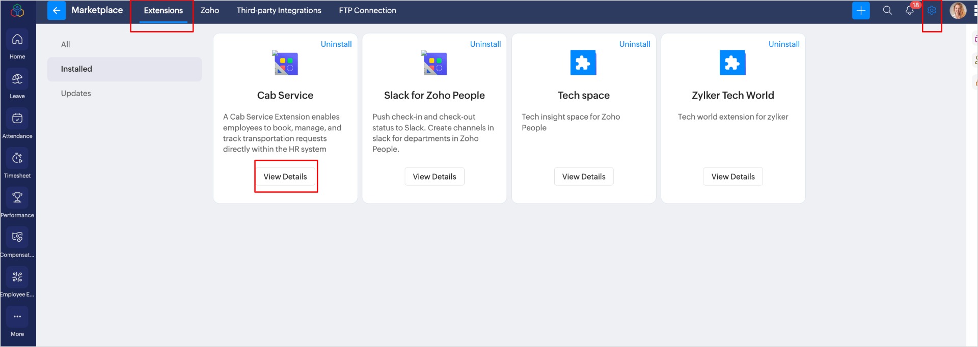 You can view and execute actions within extension setting widget in Zoho People marketplace.