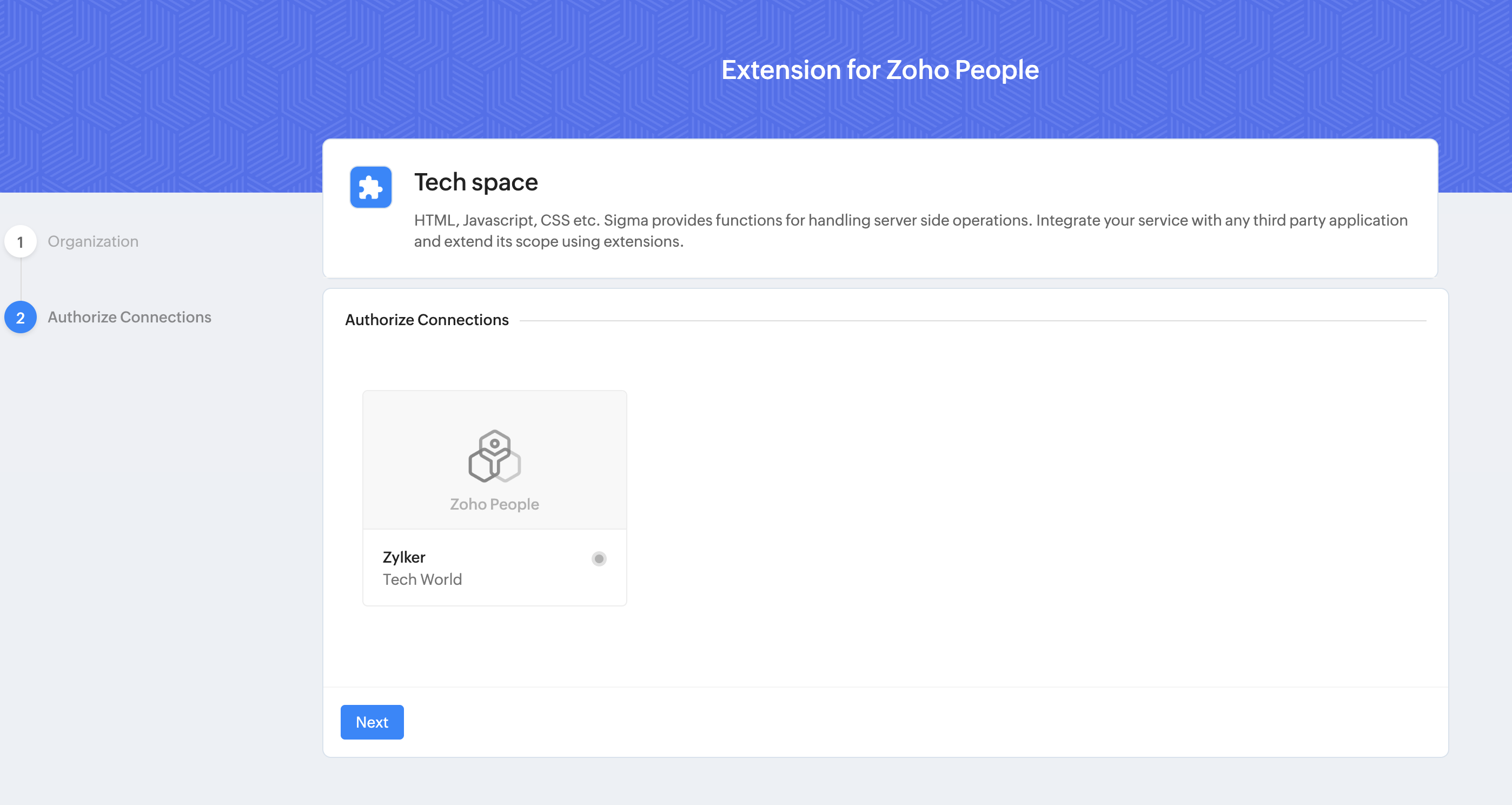 4. You can also create an extension that integrates different third-party applications with Zoho People using Connections.