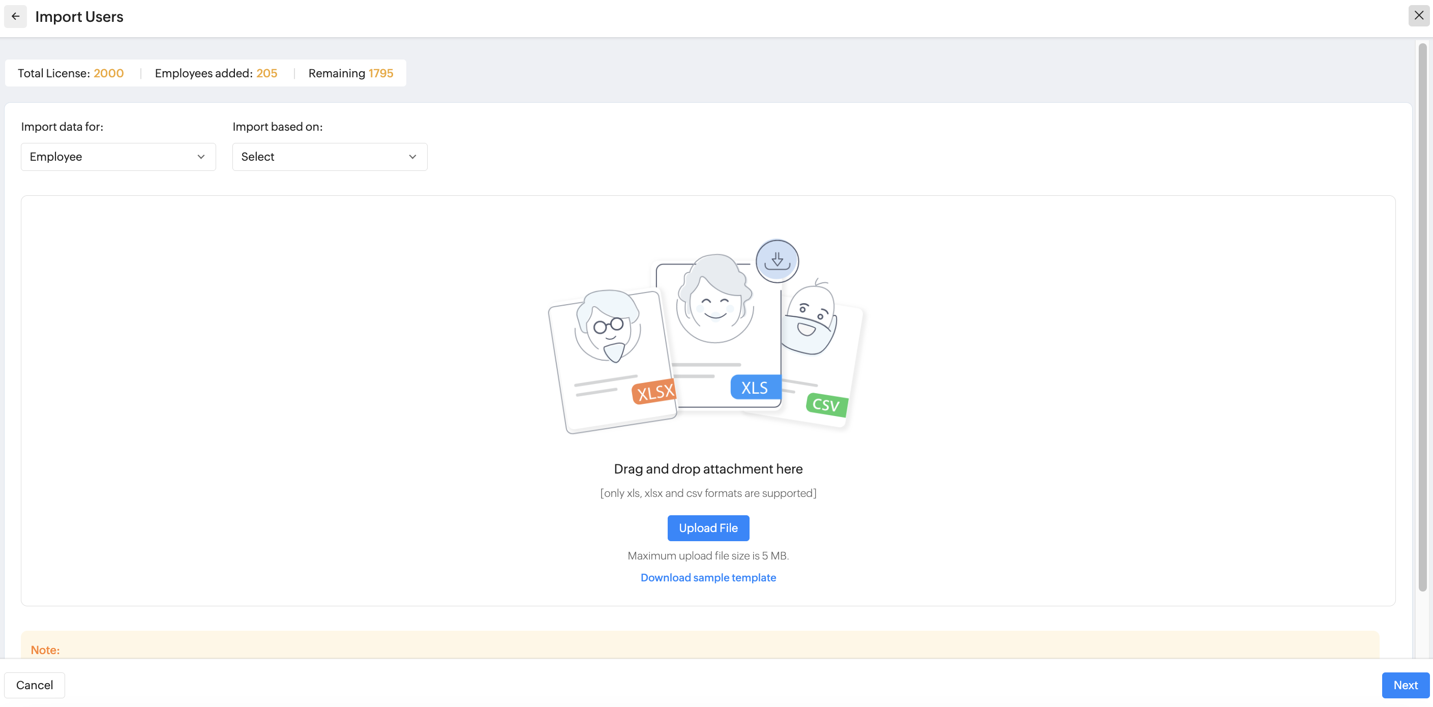 You can import multiple employee records into Zoho People using an Excel or CSV file. This is useful when onboarding new employees in bulk or migrating data from another system.