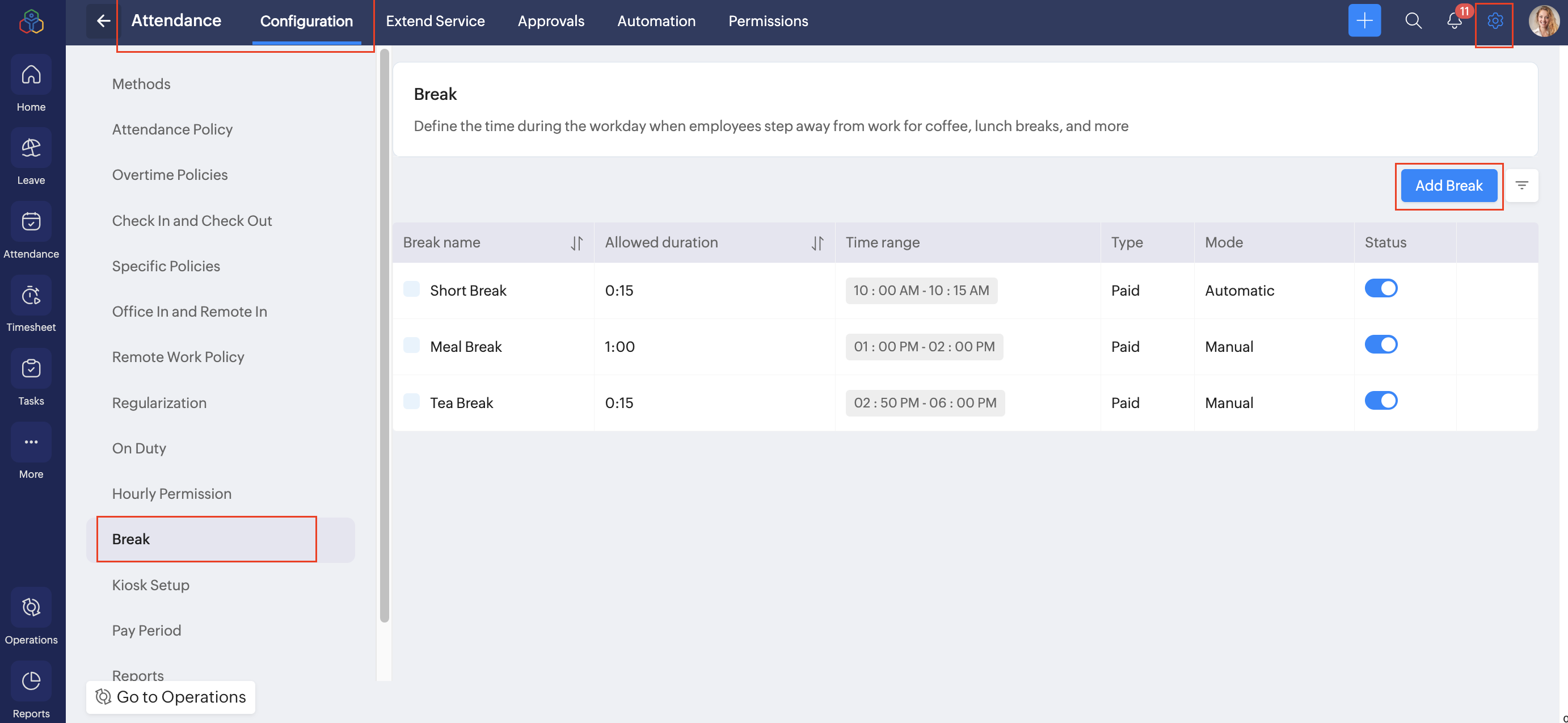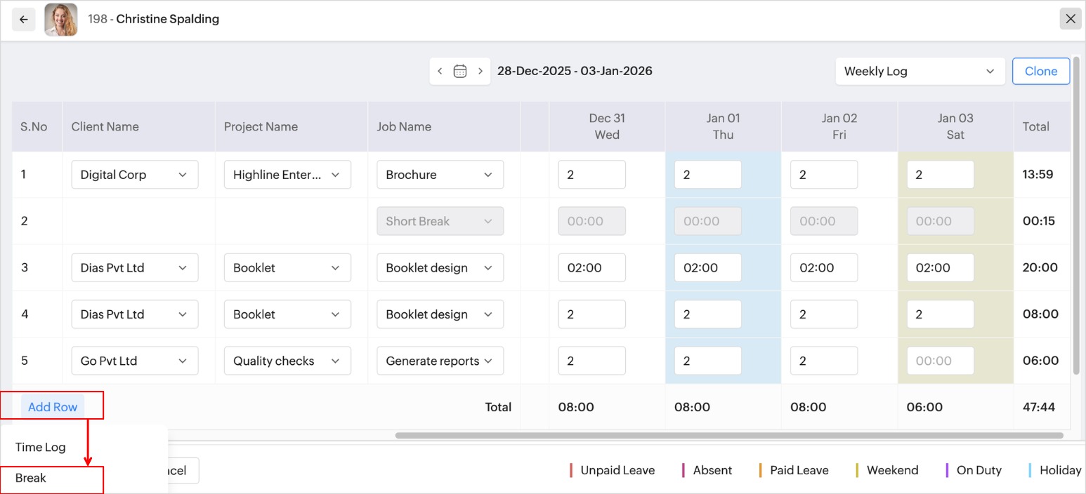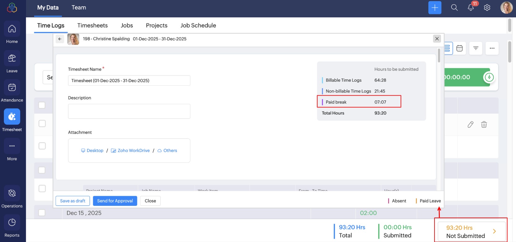 When Time entry overlap is set to Restricted, time logs cannot overlap with breaks. If an automatic break occurs during a time log, the system automatically splits the time log. The overlapping time is recorded as a break, and the remaining time is saved as separate time logs.
