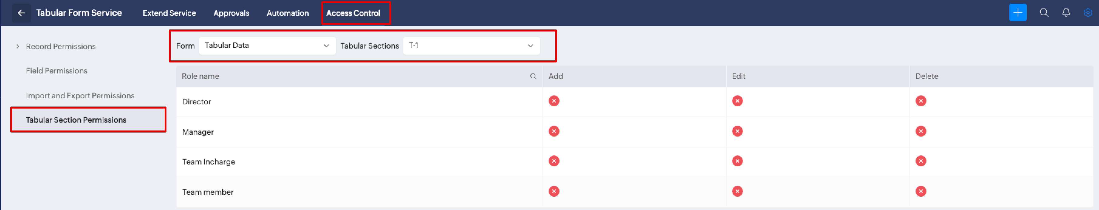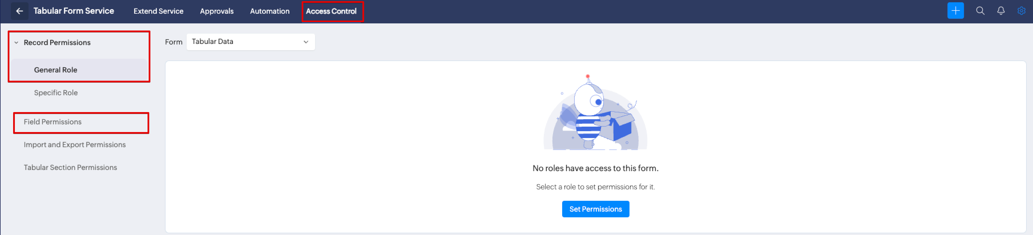 To solve this case, please go to Settings (gear icon) > Click on the respective Service > Extend Service > Click on the Form > Drag and drop a lookup field > Enable Primary lookup option > Save and then try configuring the permission.