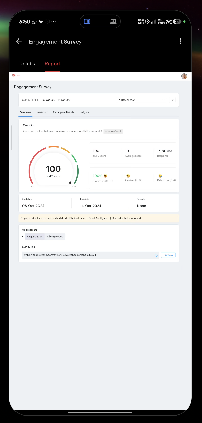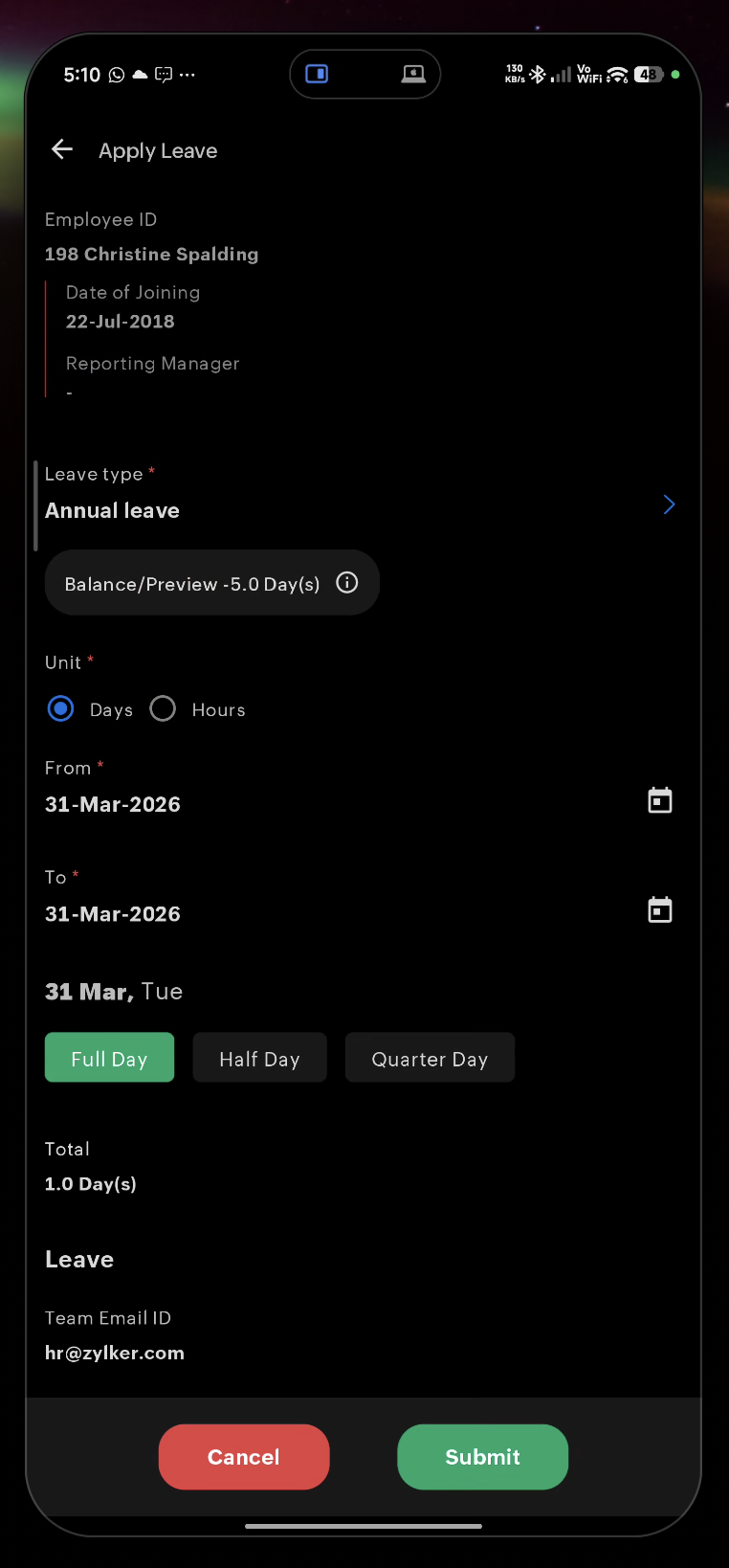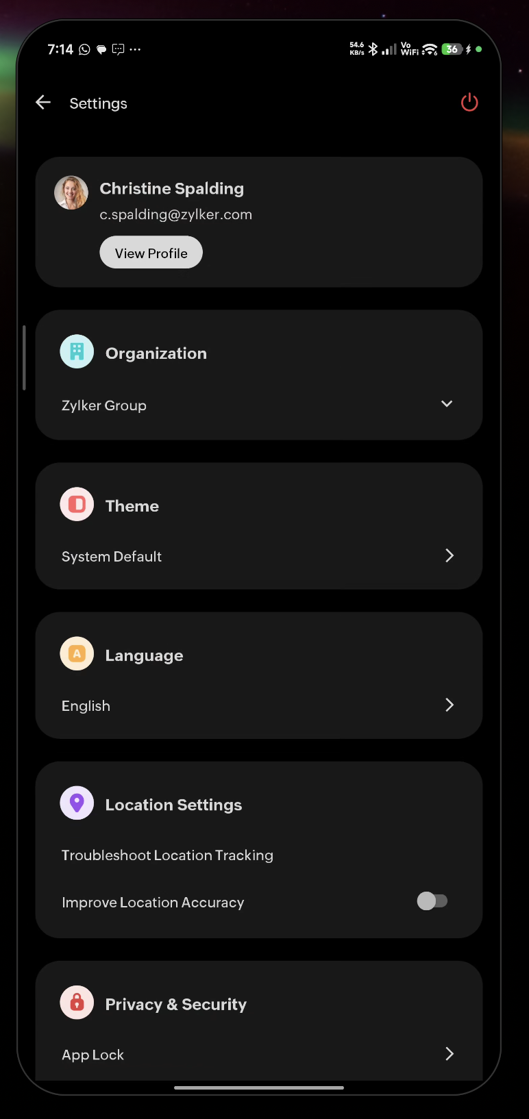 - Open the Zoho People app.