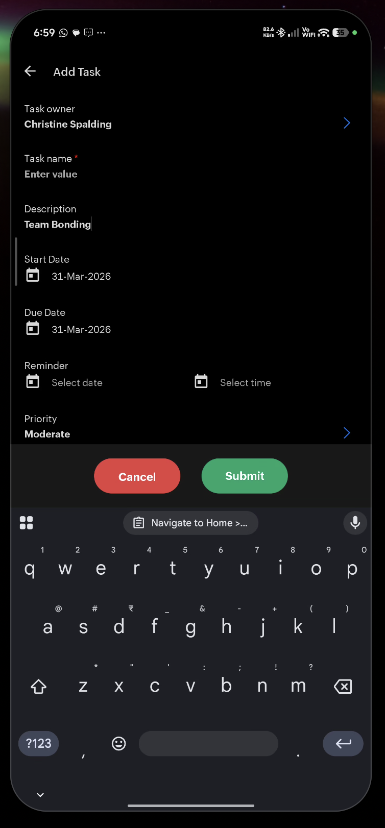 - Enter the task name and description.