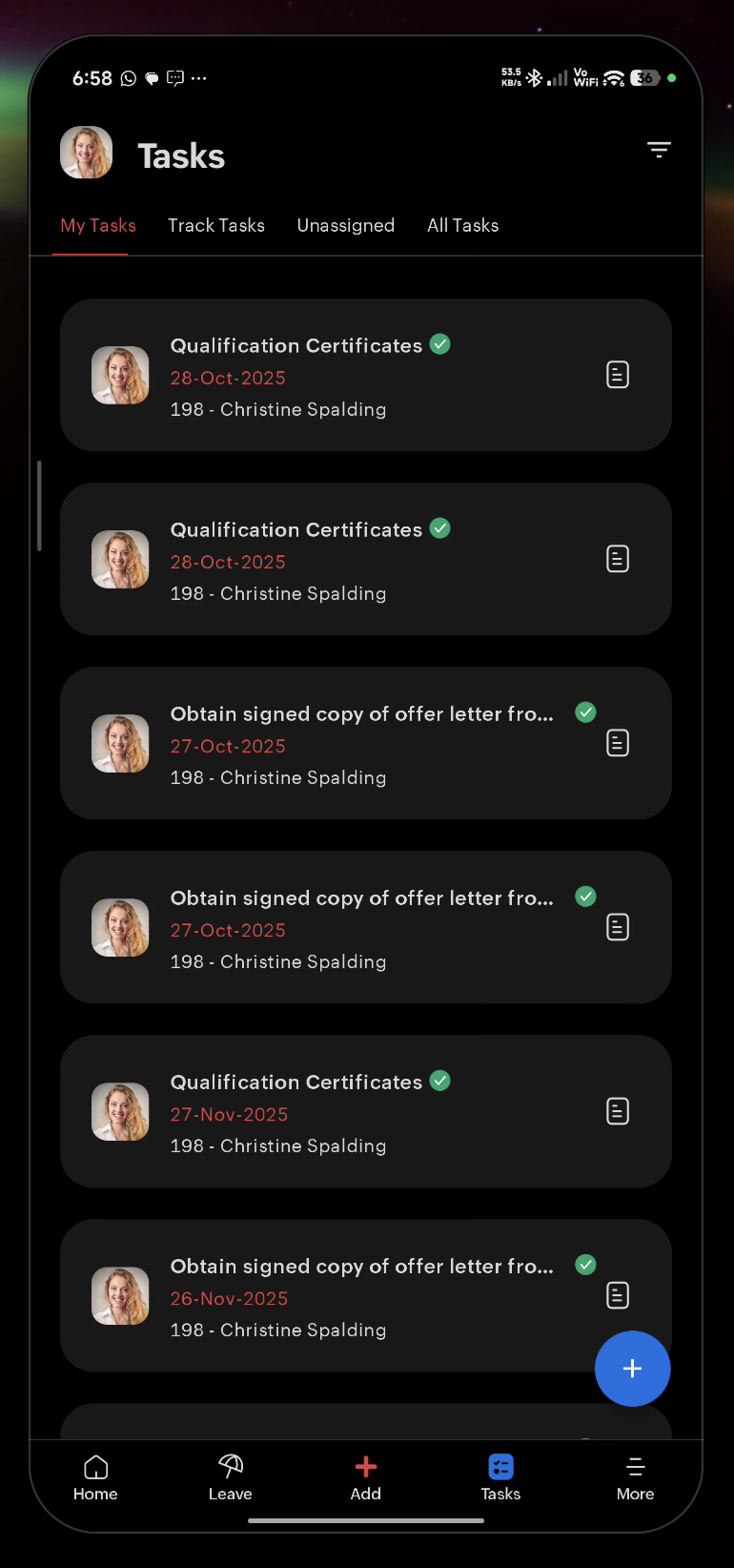 Tap Add from the Tasks section: