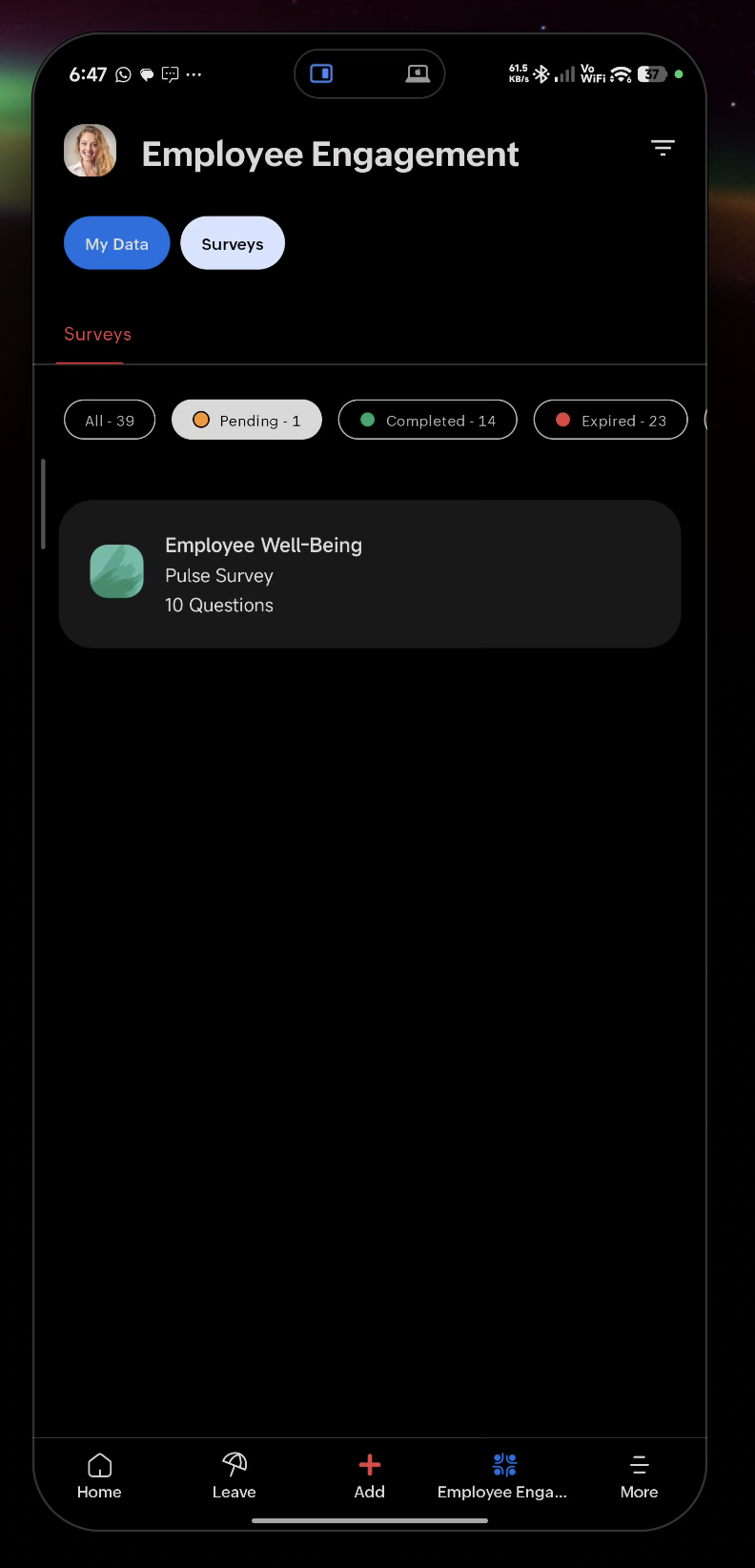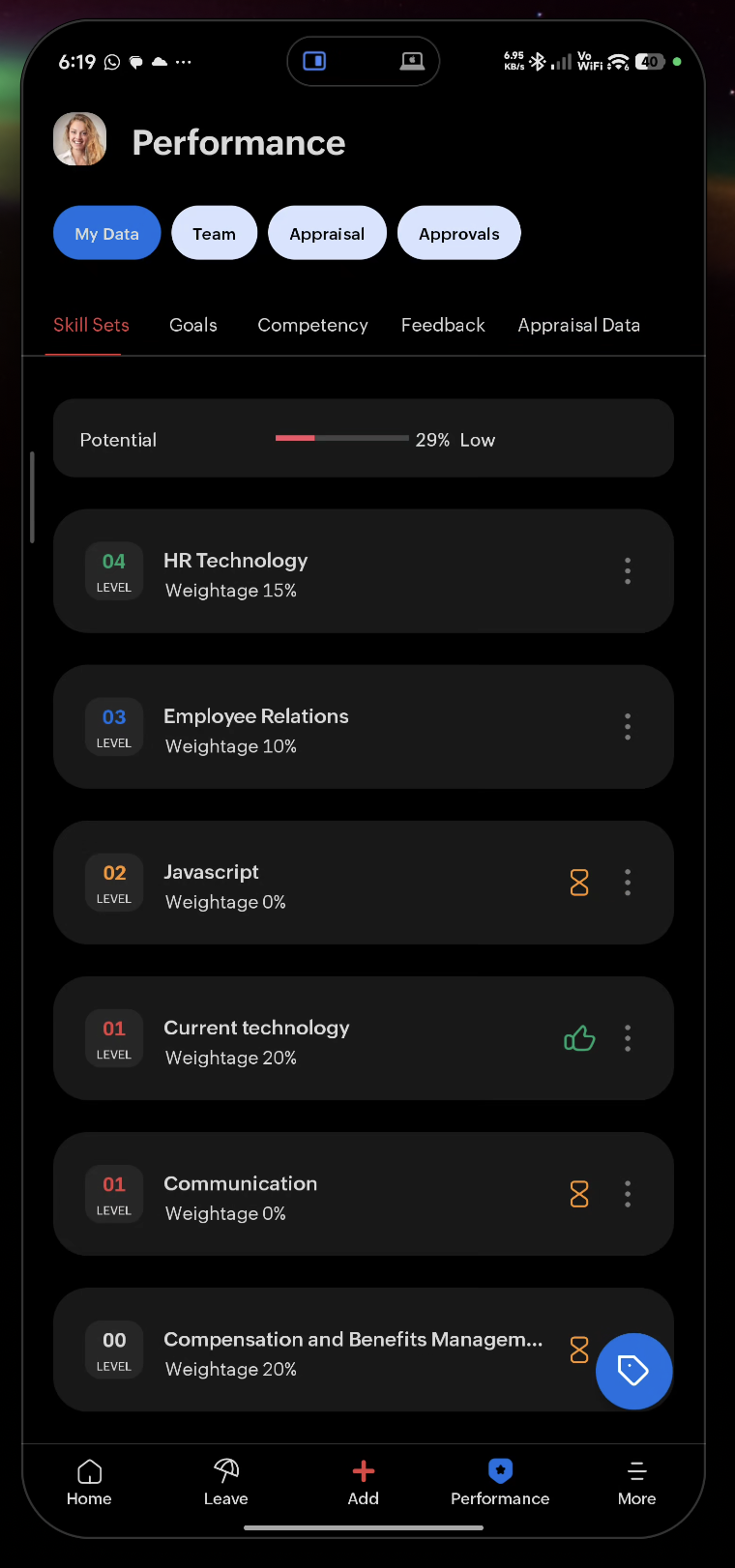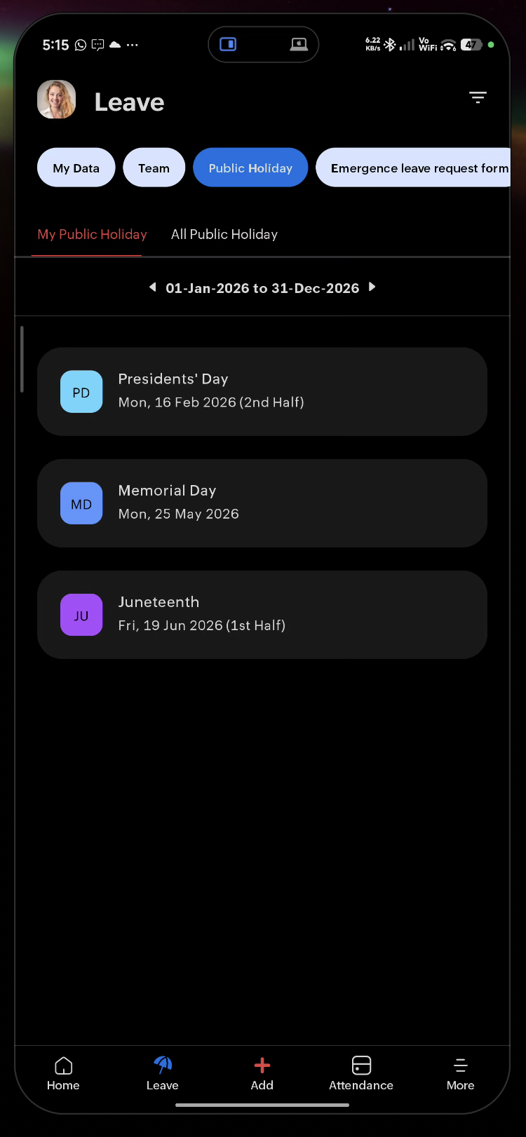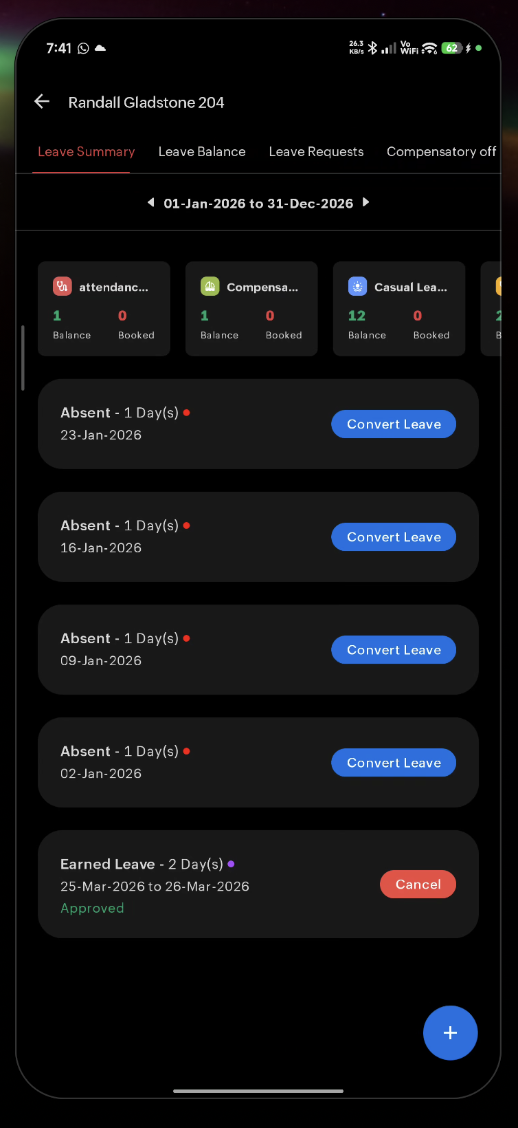 - Leave — Your leave requests and balance
