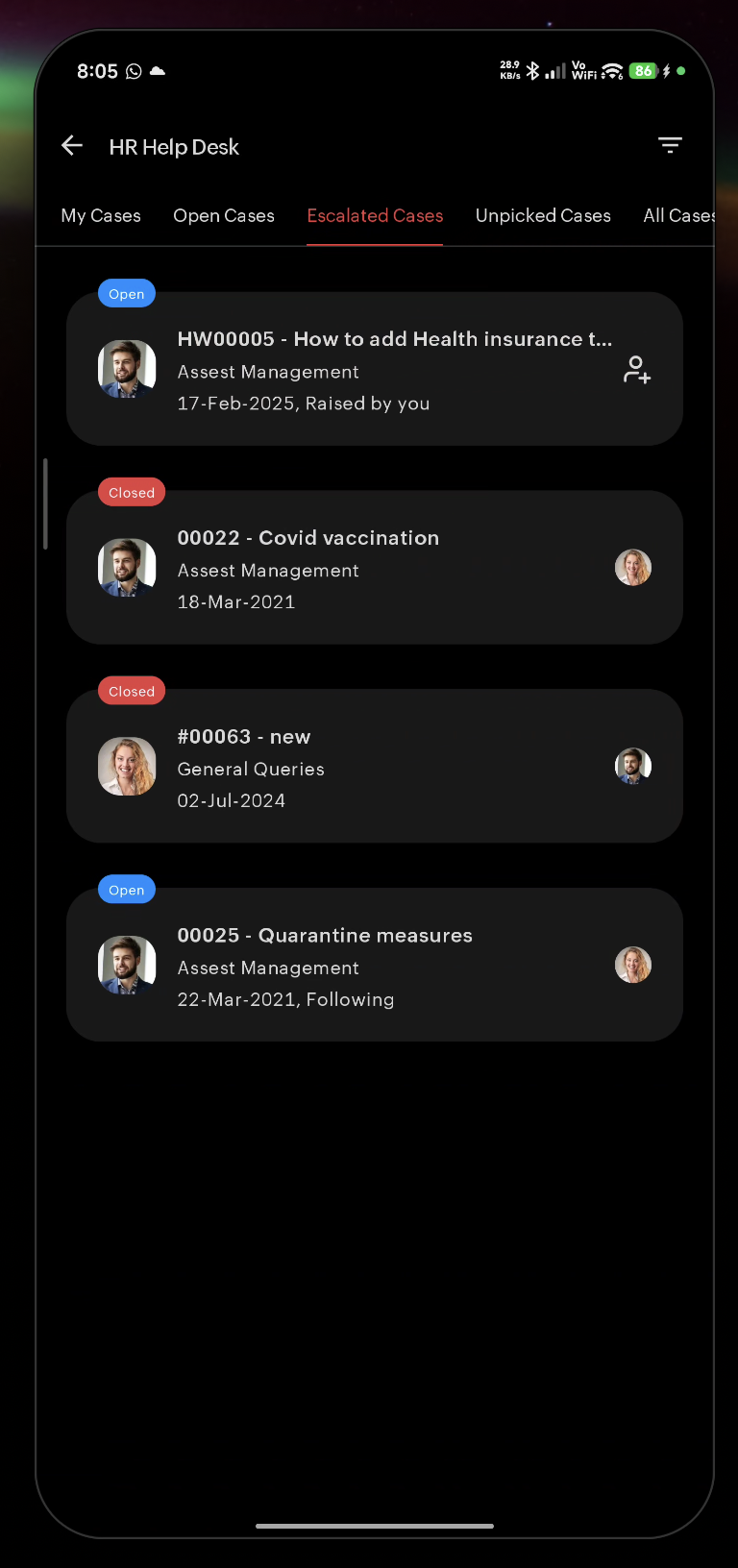 - Cases — Your open HR cases