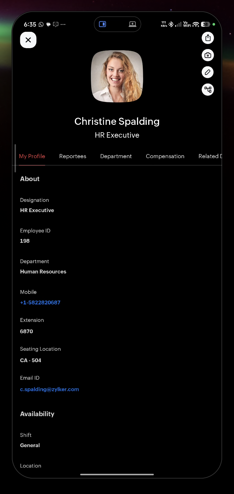 The Zoho People mobile app is designed for all Zoho People users, offering features for both standard employees (referred to as the “Team Member” role) and managers. However, service configuration and certain advanced functionalities are available only through the Zoho People web application for administrators. Enabled features, account licensing, and configured permissions can affect what is available to mobile app users.