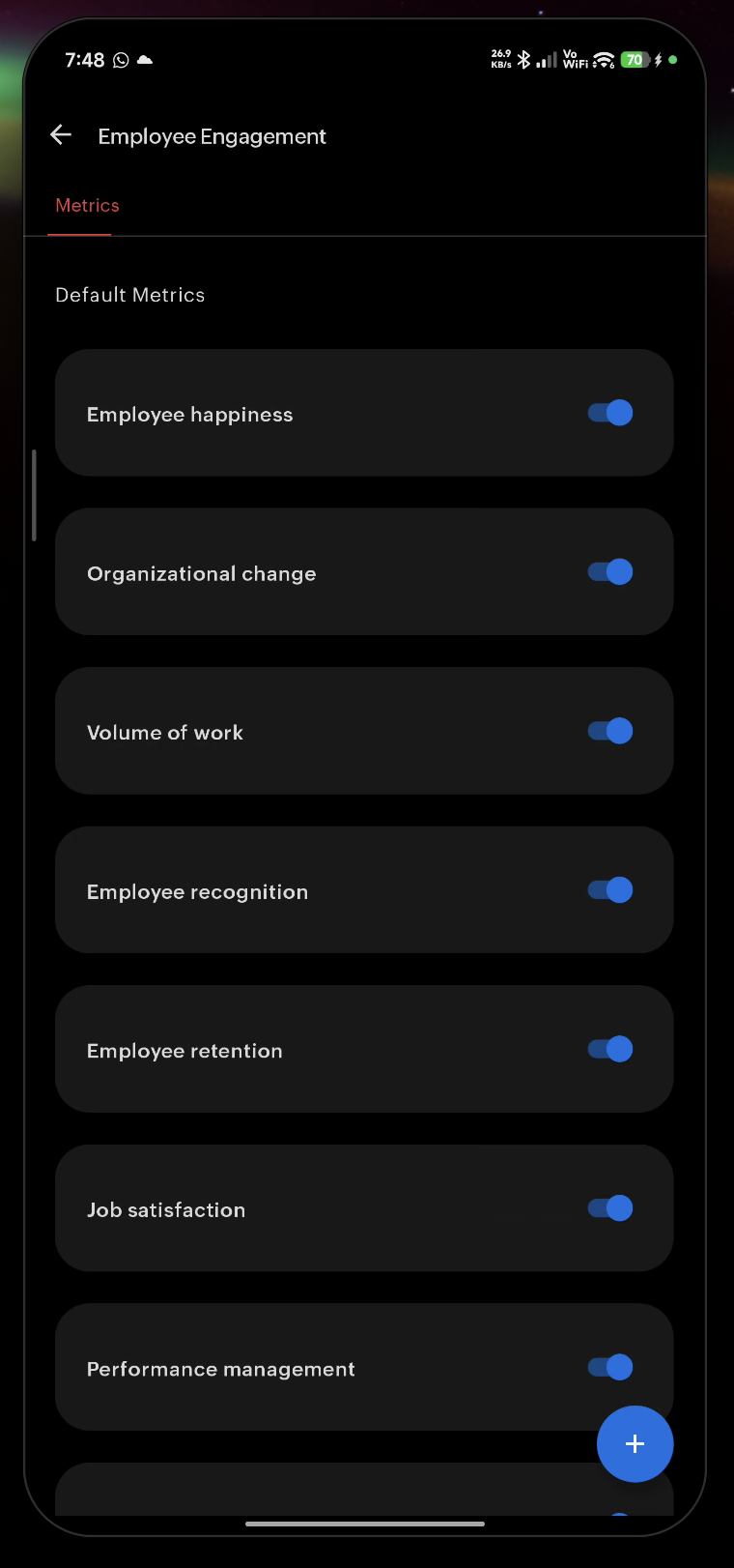 Add and manage default and custom metrics used within surveys.