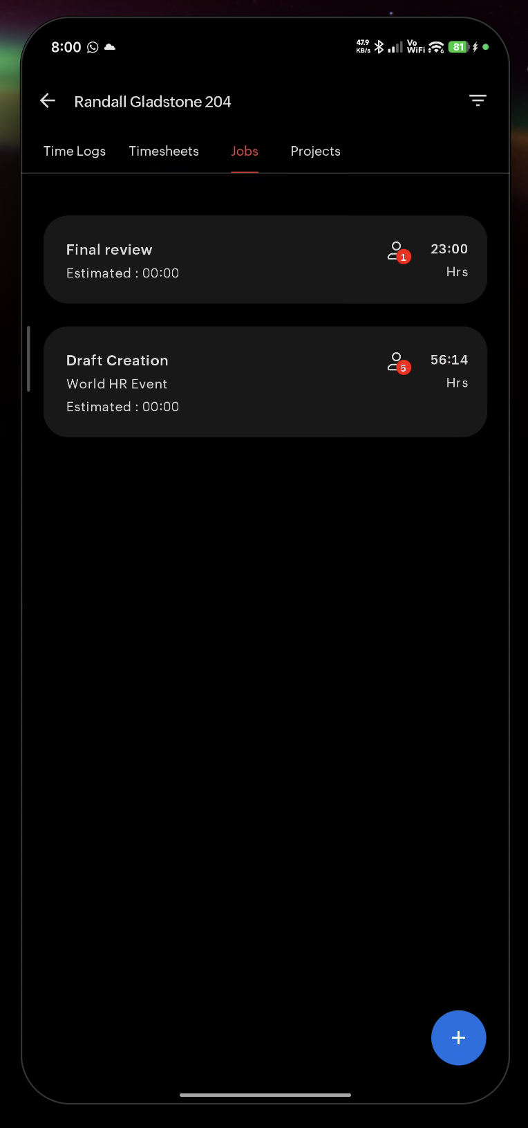 - Time Logs — View and add new time log entries