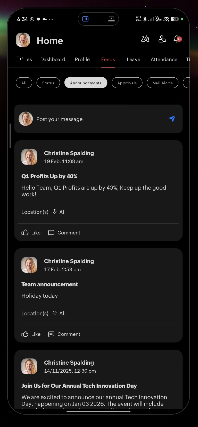 - Department Wall — View and post department messages