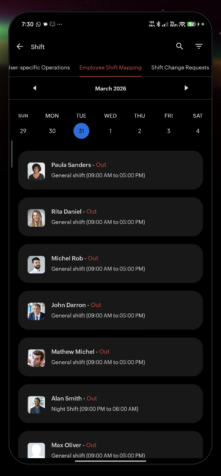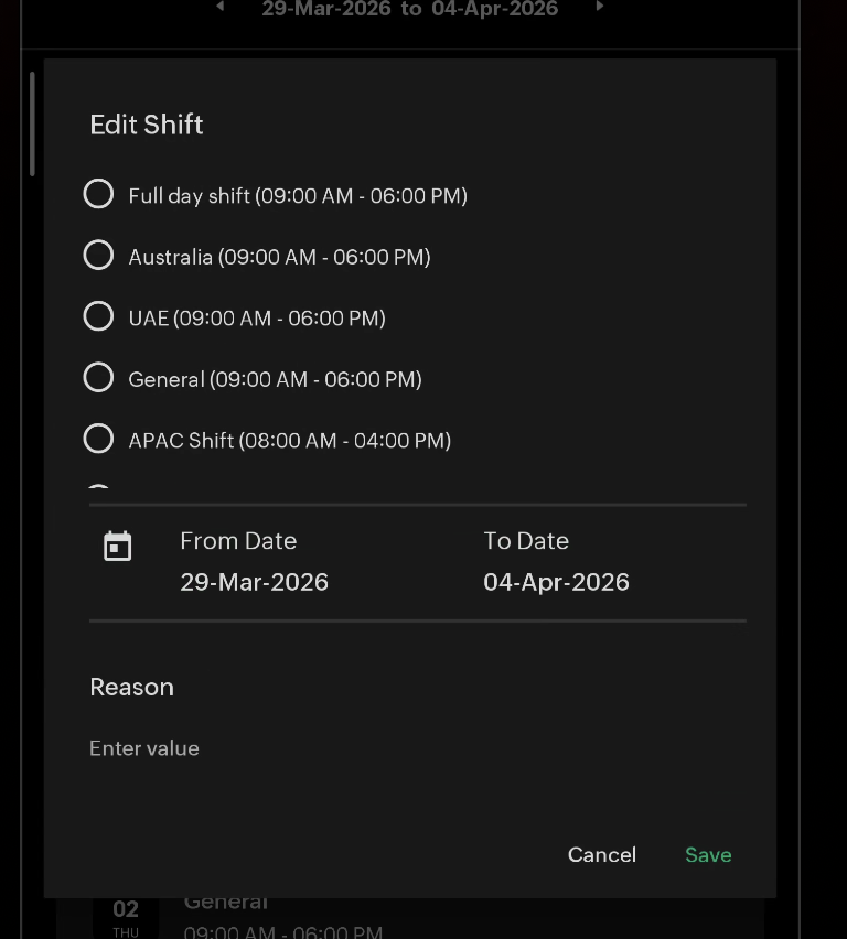 Additionally, you can also Manage Employee Shift Mapping, Shift Change Requests