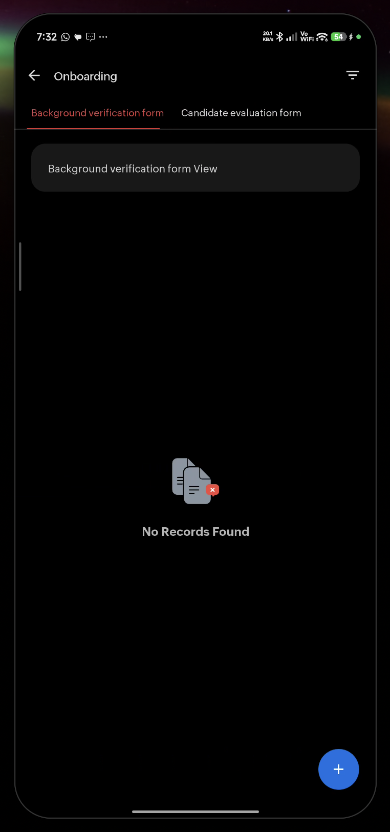 View and Add Background verification form, Candidate evaluation form records.