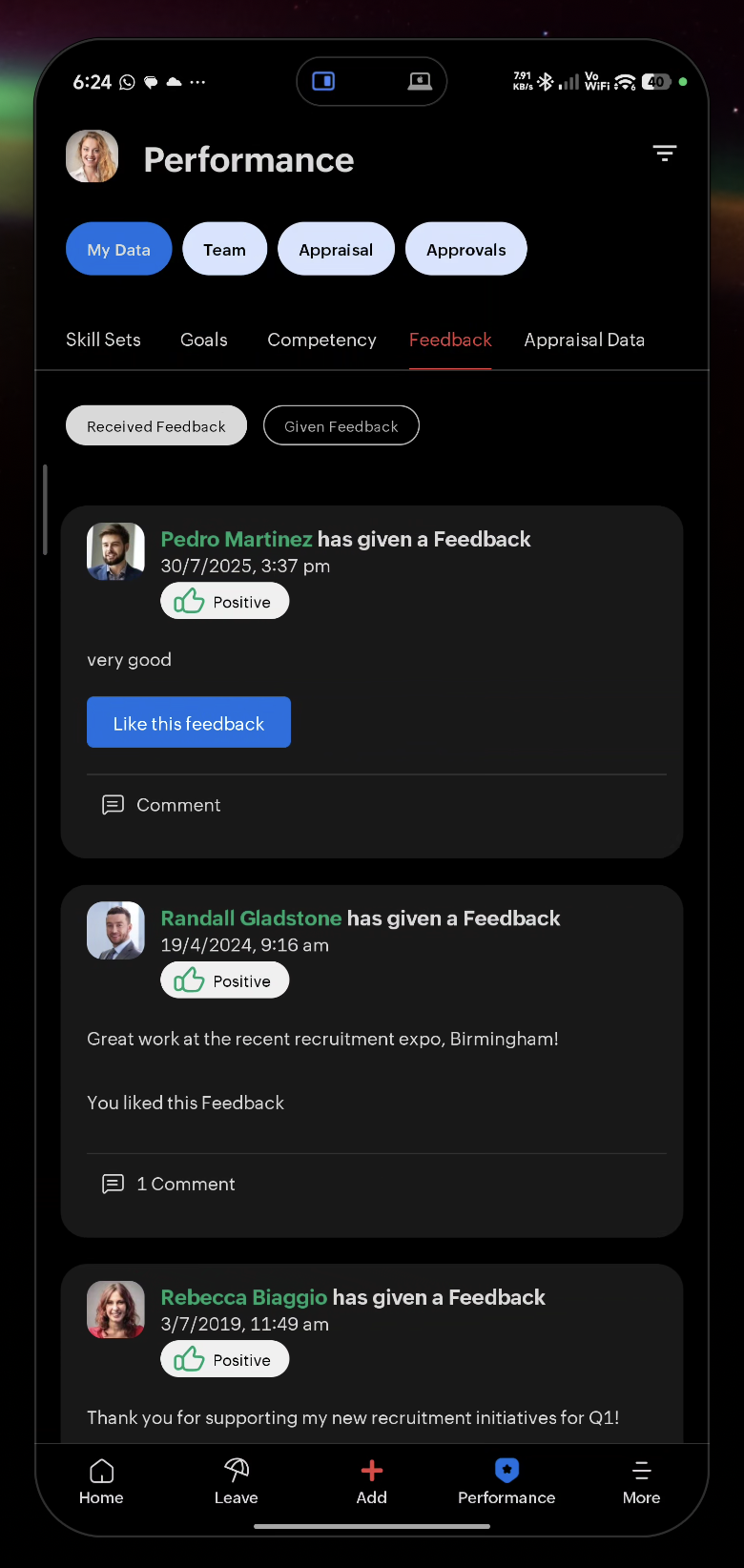 - Feedback — Performance feedback received and given