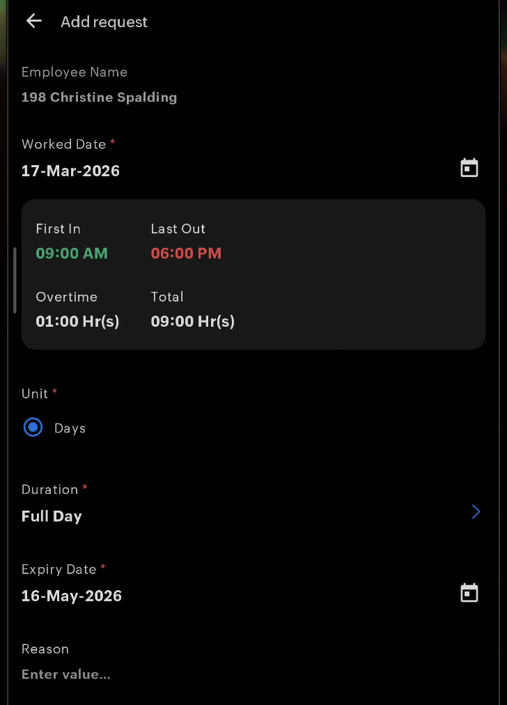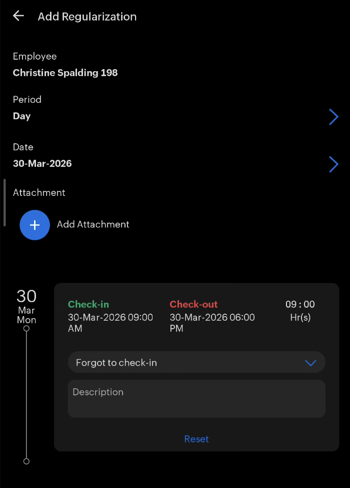 - Add Attendance Regularization Request