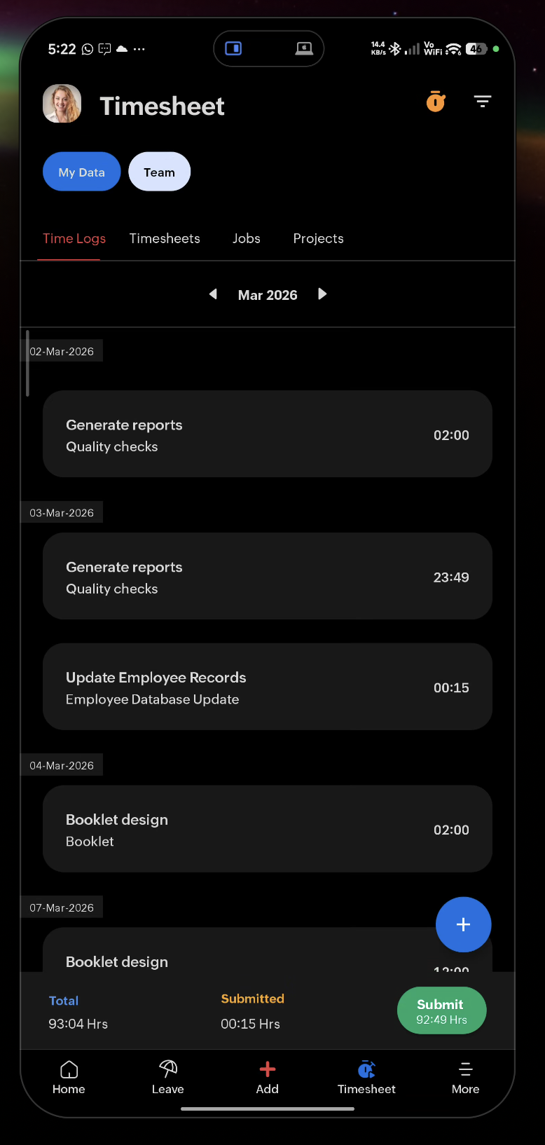 View and add your timesheets.