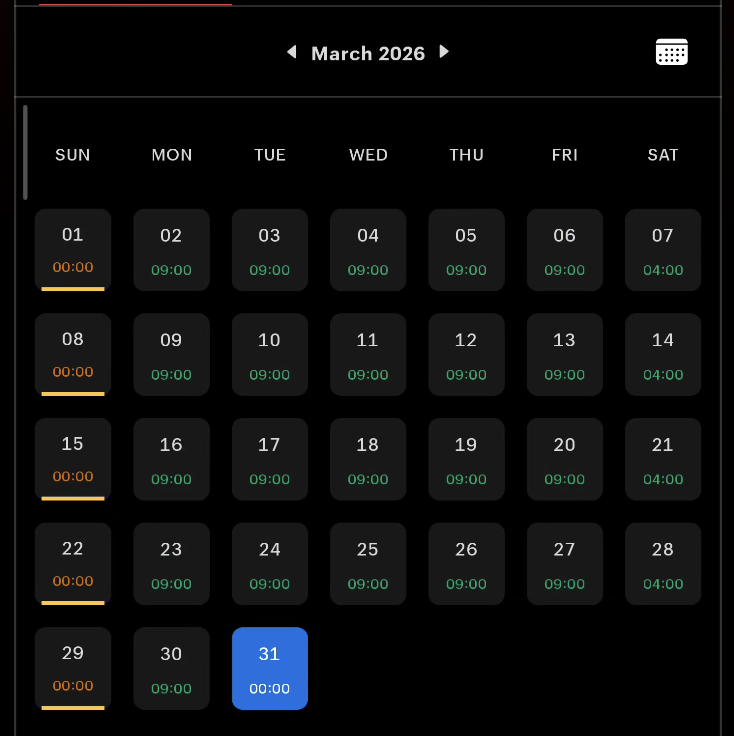 - Tap a shift to see its start time, end time, and shift type.
