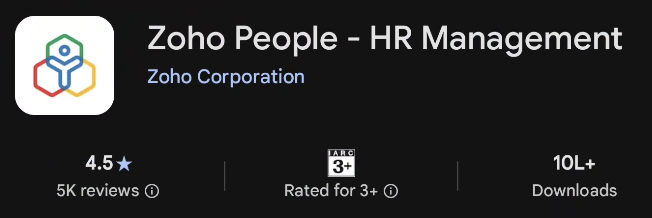Zoho People from the Google Play Store or App Store on your Android/Apple device. (Simply search "Zoho People")