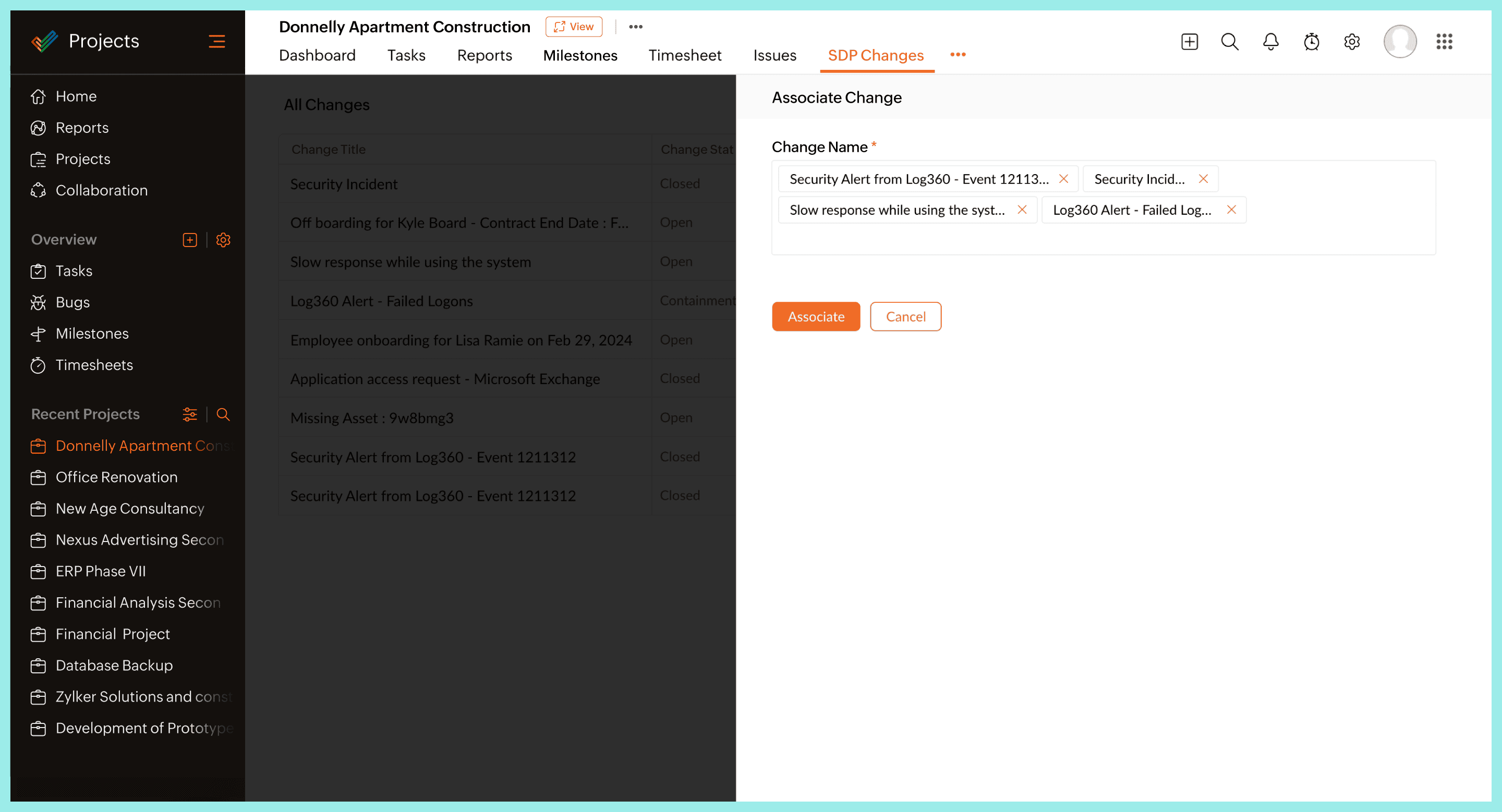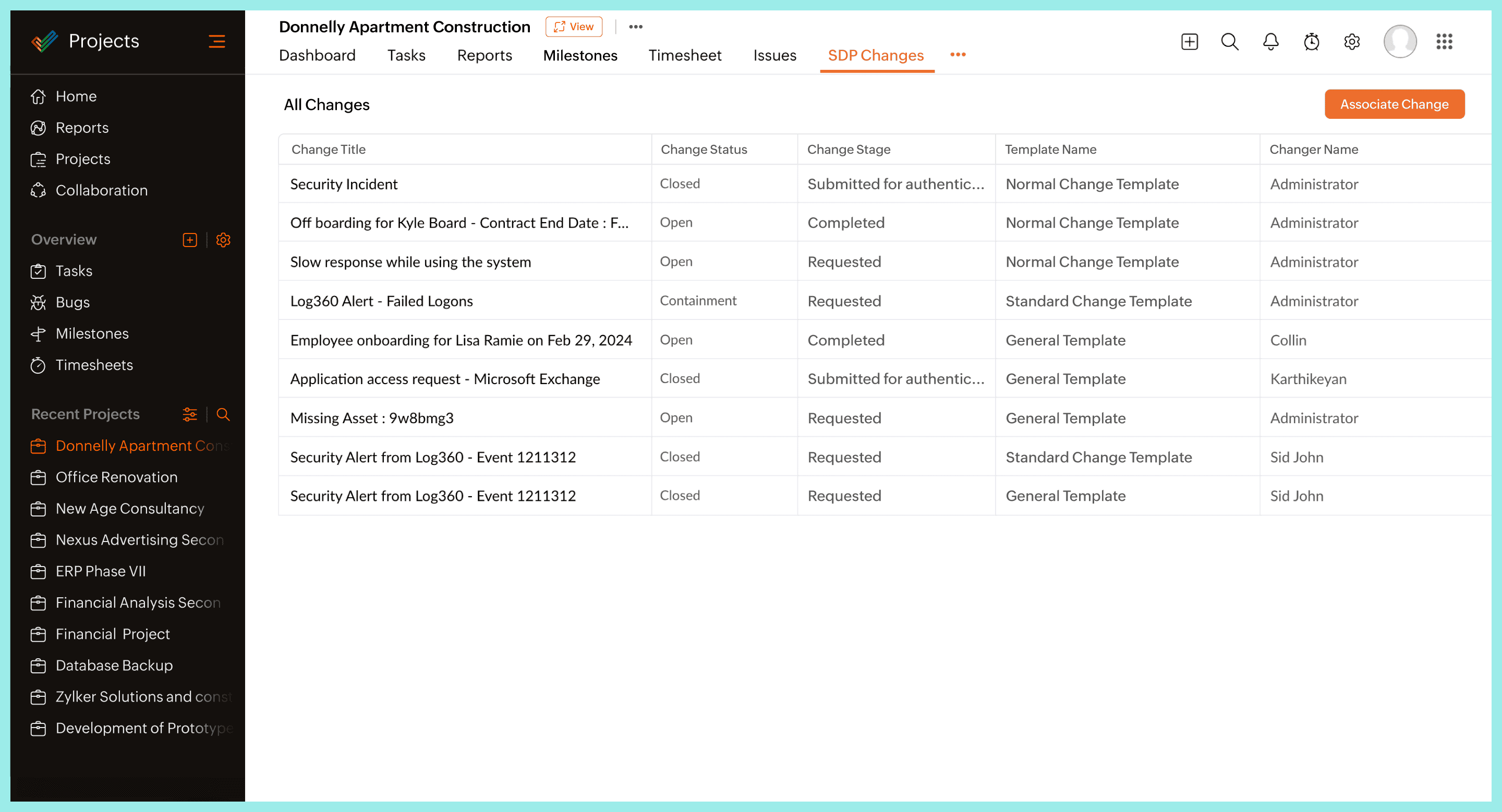 SDP Changes Extension for Zoho Projects | Online Help | Zoho Projects
