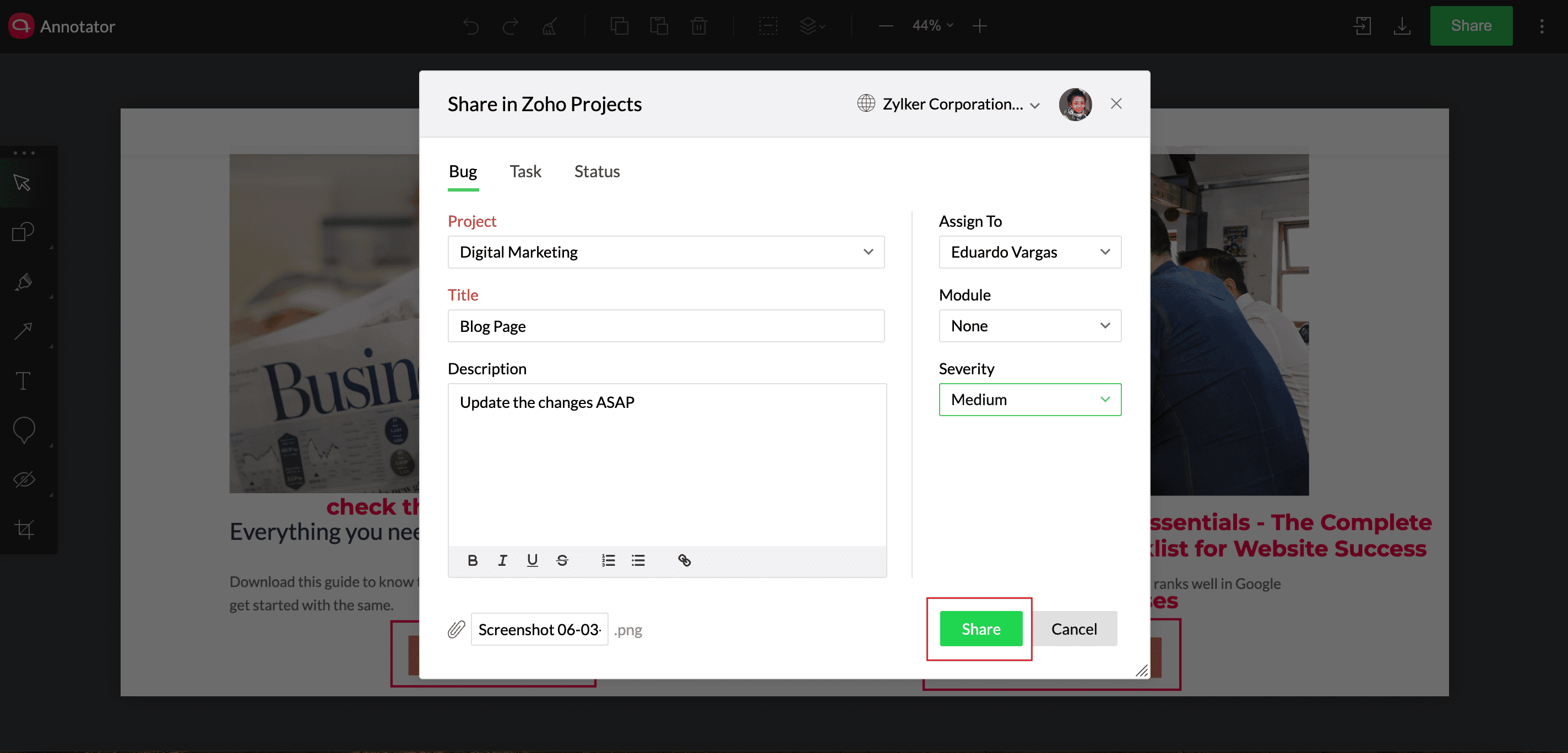 Zoho Annotator for Zoho Projects | Online Help | Zoho Projects