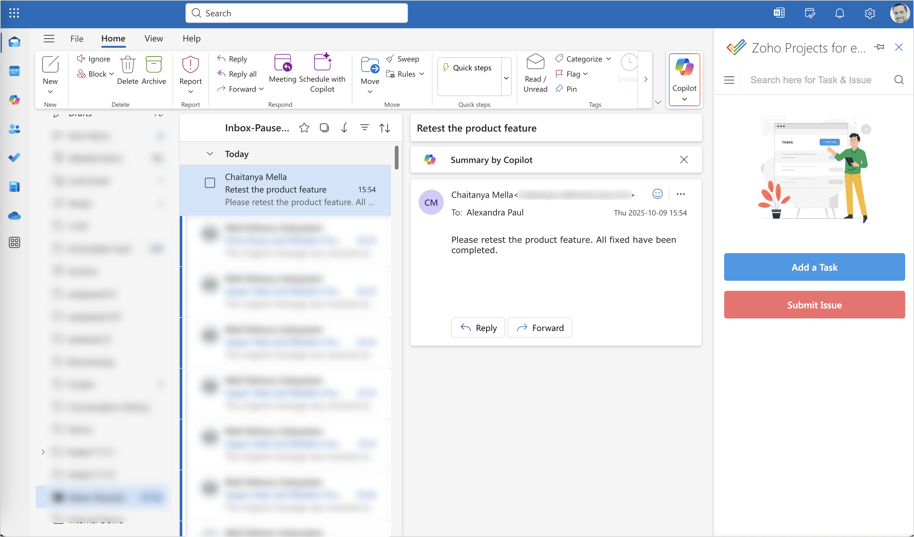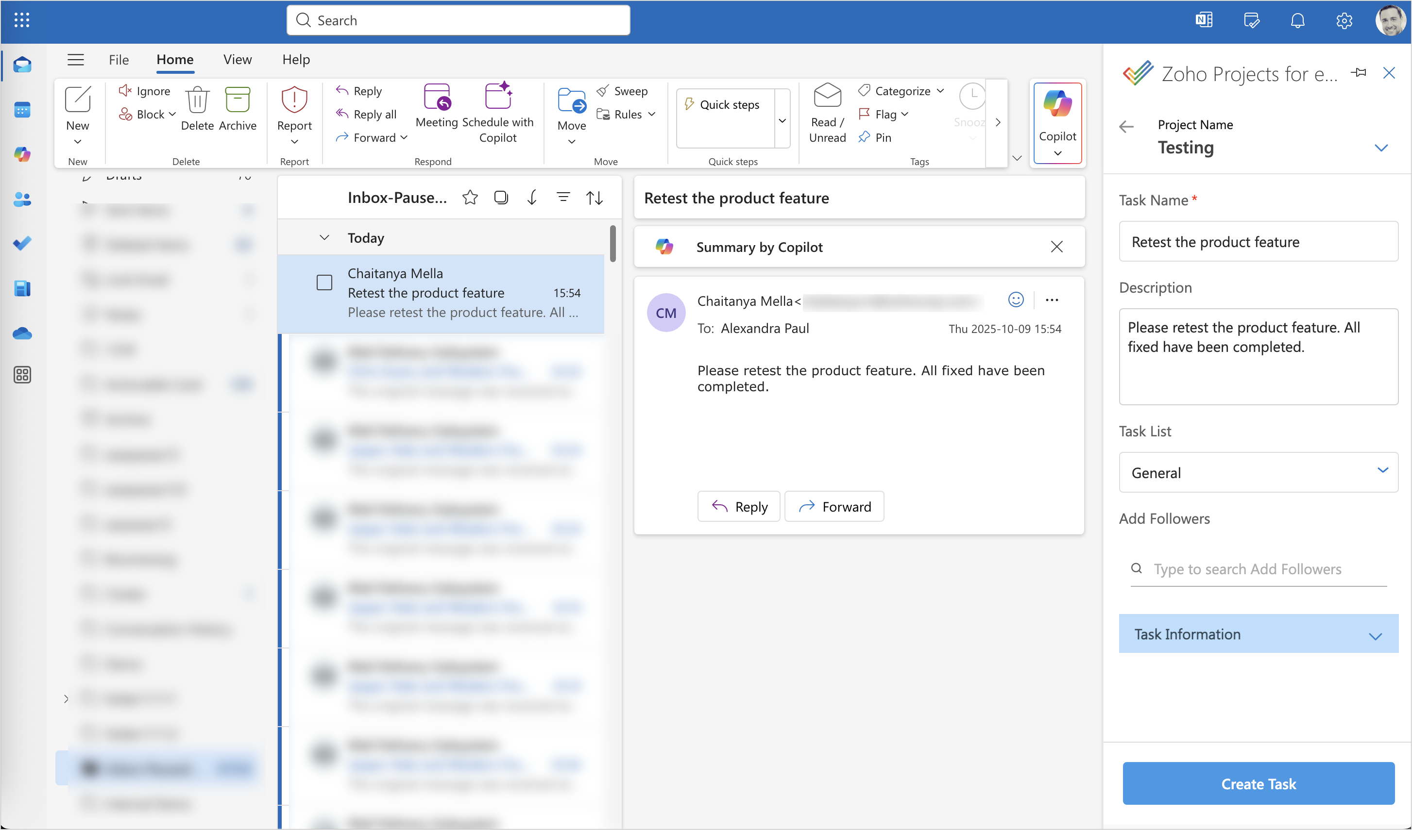 Users can integrate Zoho Projects with Microsoft Outlook to sync project-related emails as tasks or issues providing a simple way to manage your projects.