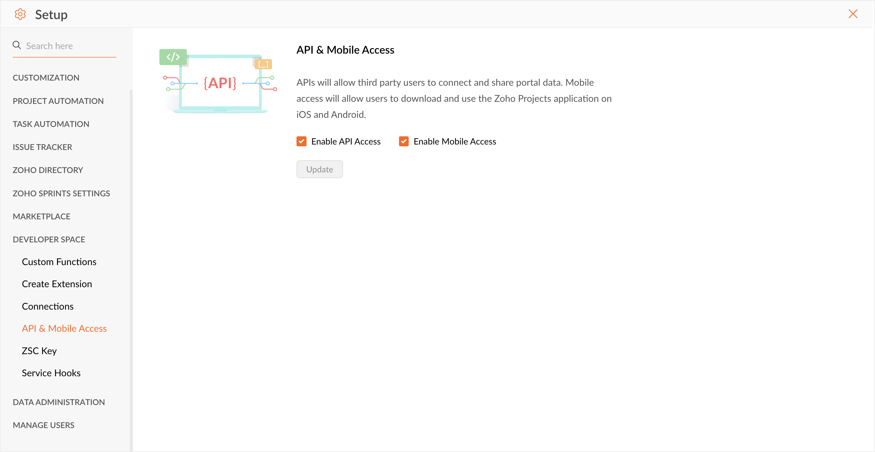 Mobile access will allow users to download and use the Zoho Projects mobile application on Android and iOS.