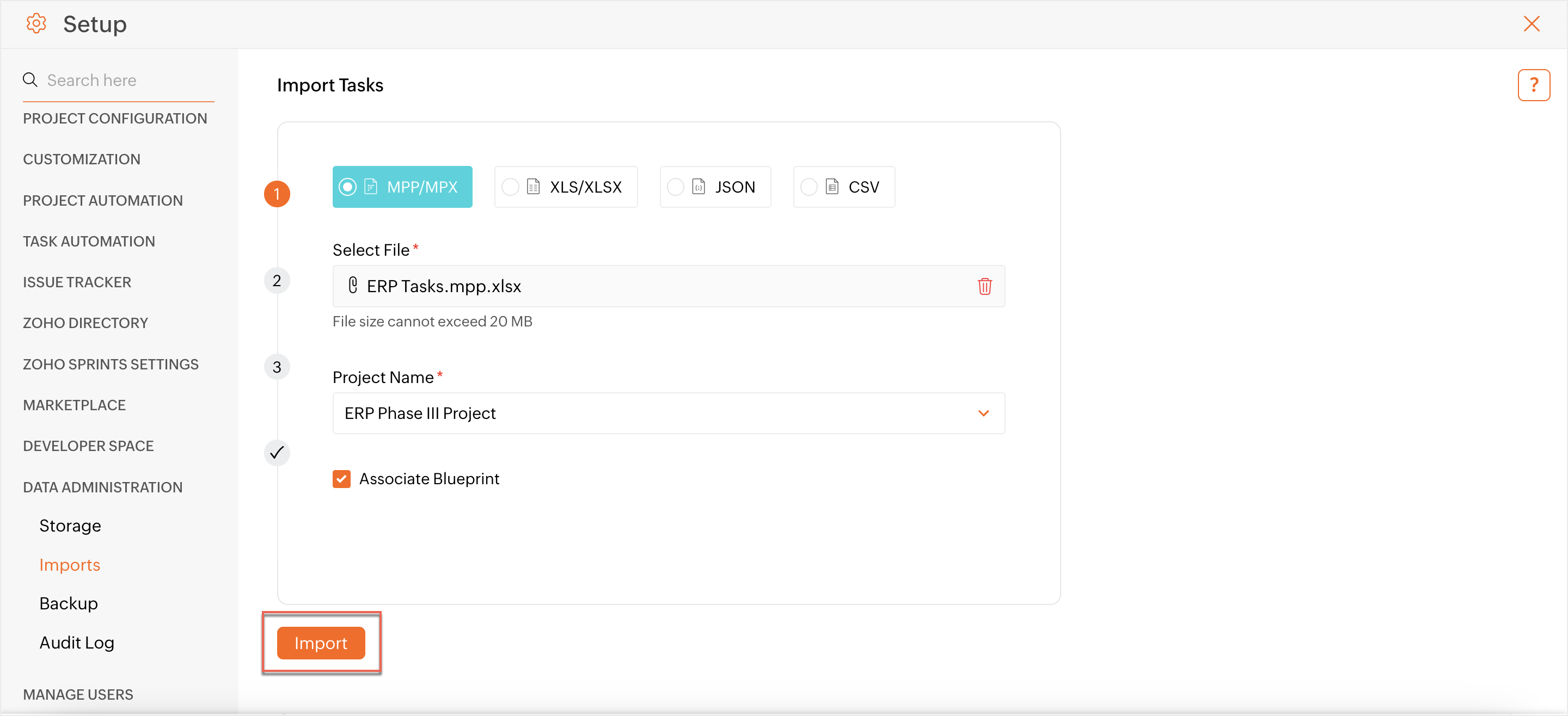 Learn how to import Microsoft Projects files (MPP / MPX) into your Zoho Projects portal. You can plan your project in Microsoft, import them and start collaborating in Zoho Projects. A sample import file is attached below.