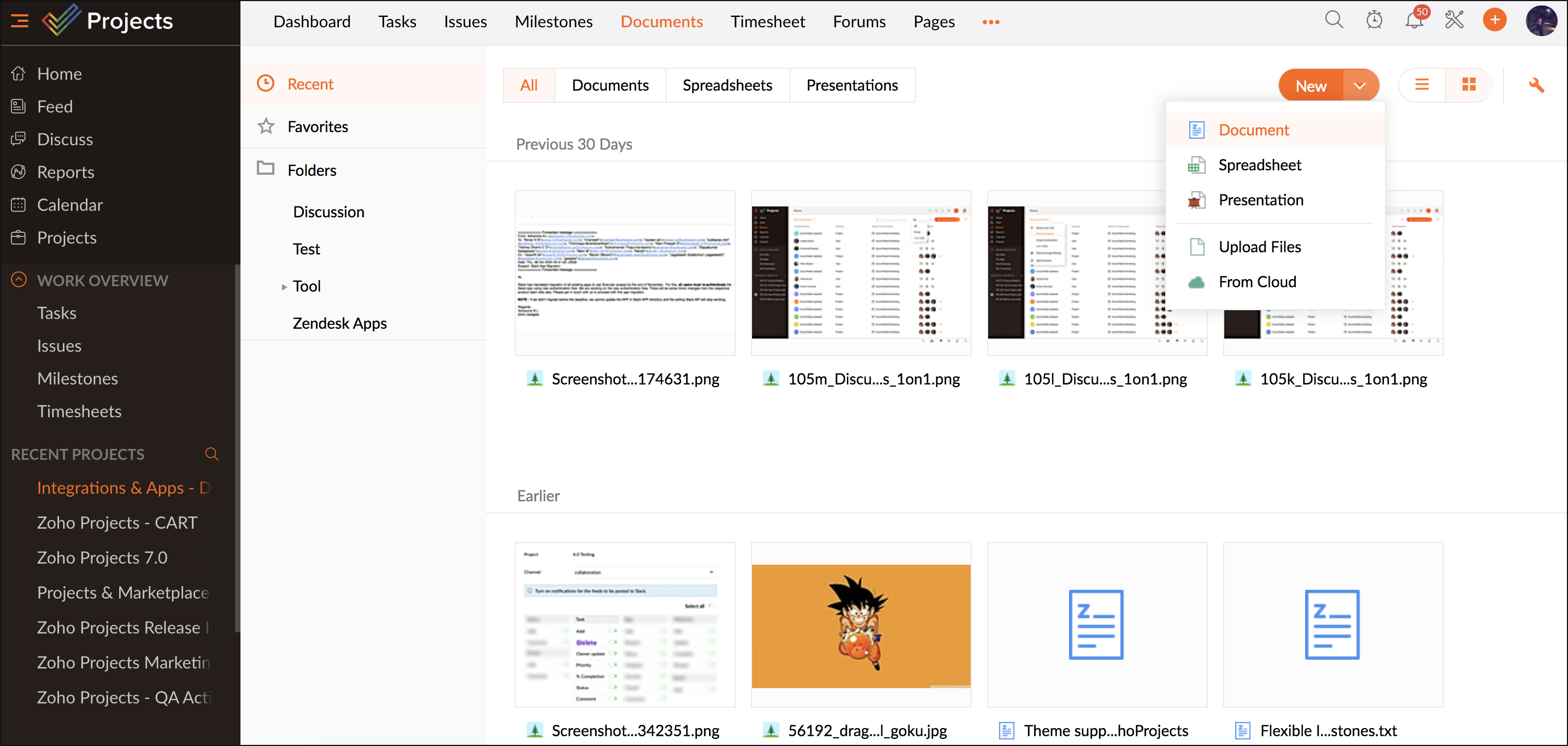 Apart from attaching documents from your personal desktop now you can easily upload your Google documents, spreadsheets, presentations, etc for your project into Zoho Projects. This way your documents stored in Google Docs can be shared with all the team members in your project. The Google Drive for Zoho Projects extension is available for download from the marketplace.