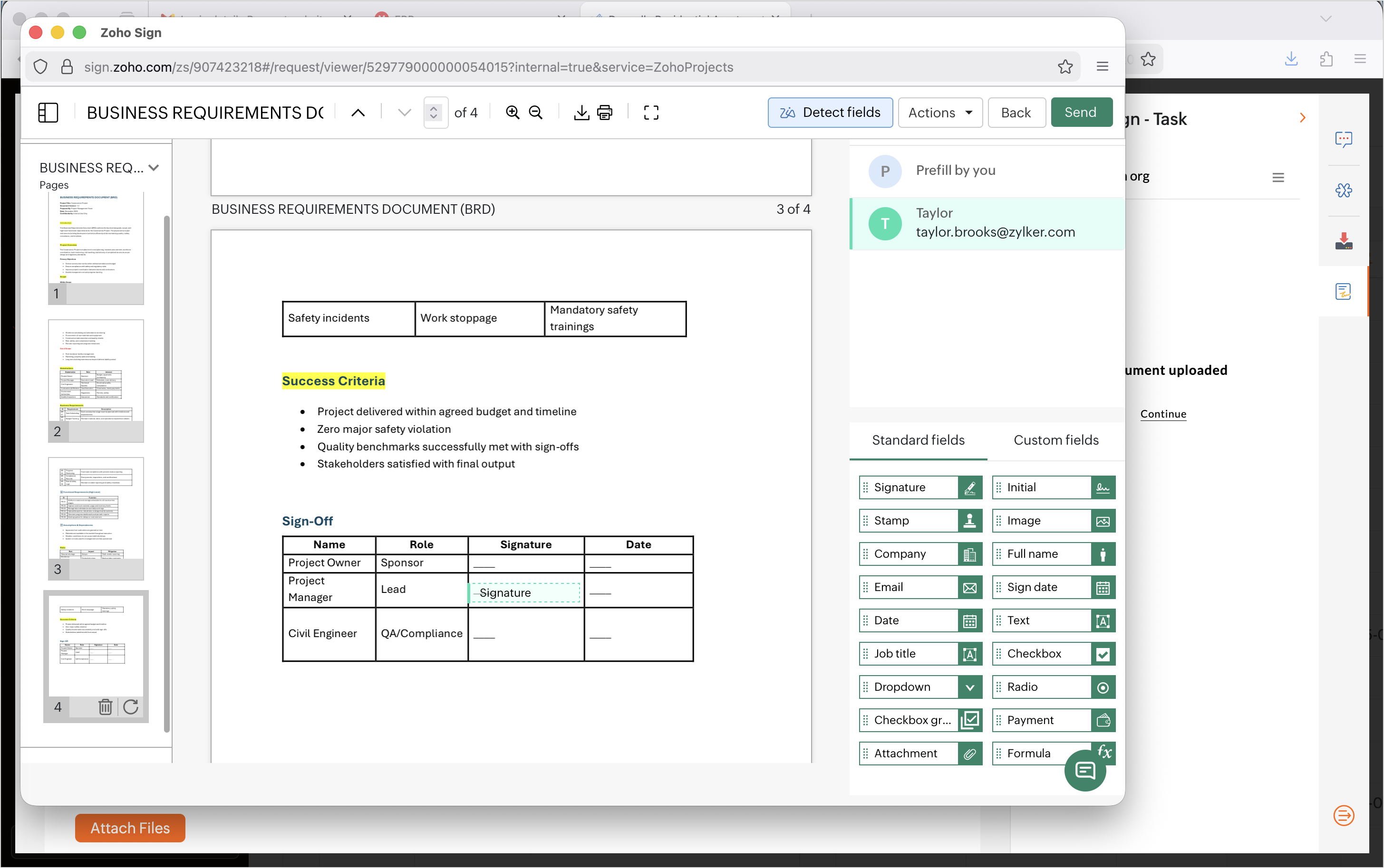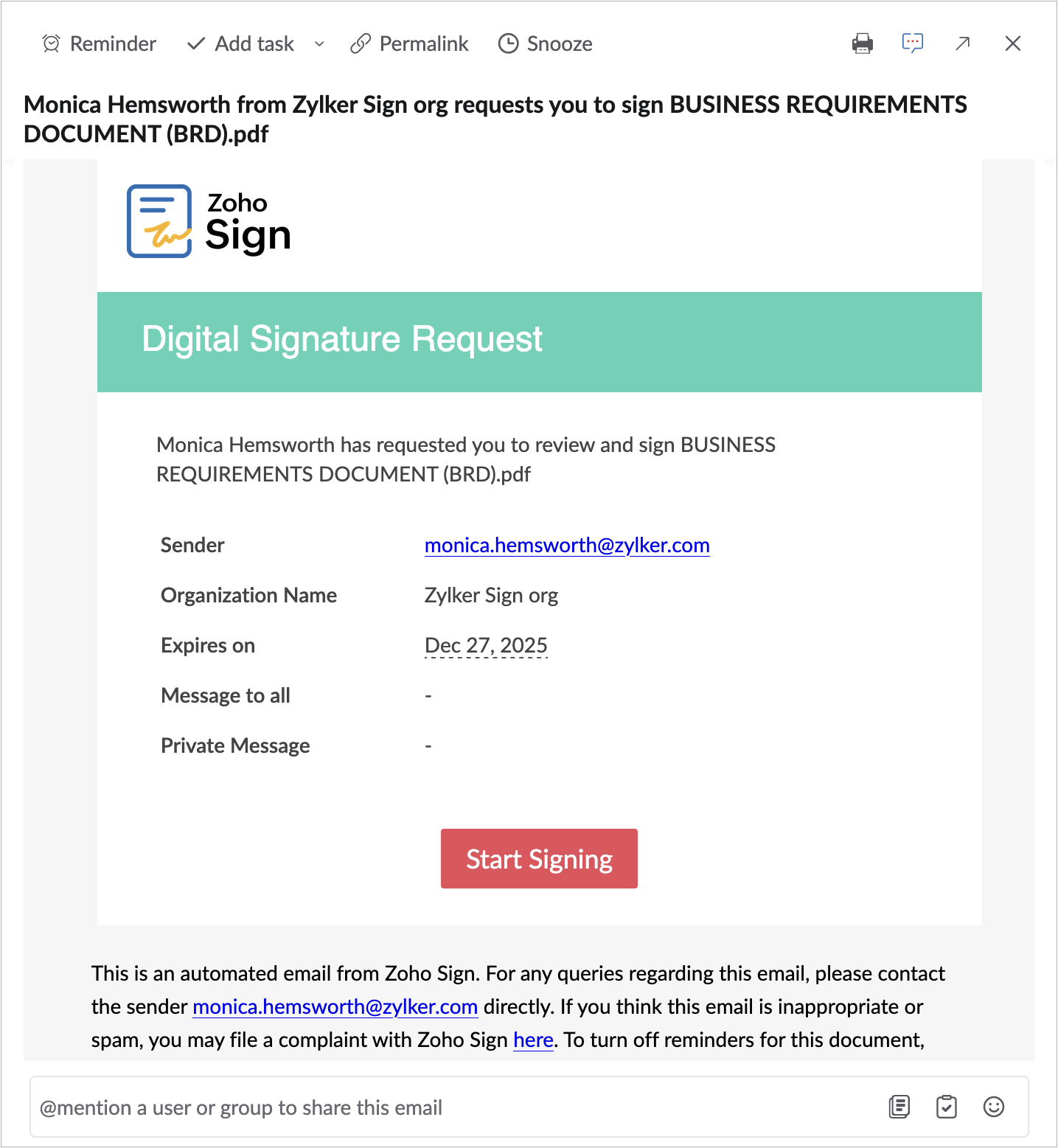 - Hover over the connection, click Connect for Zoho Sign and agree to the conditions.