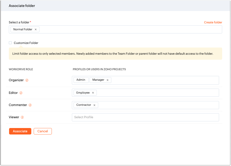 Only Private Team Folders can be associated.Learn how to use the best tools for sales force automation and better customer engagement from Zoho's implementation specialists.