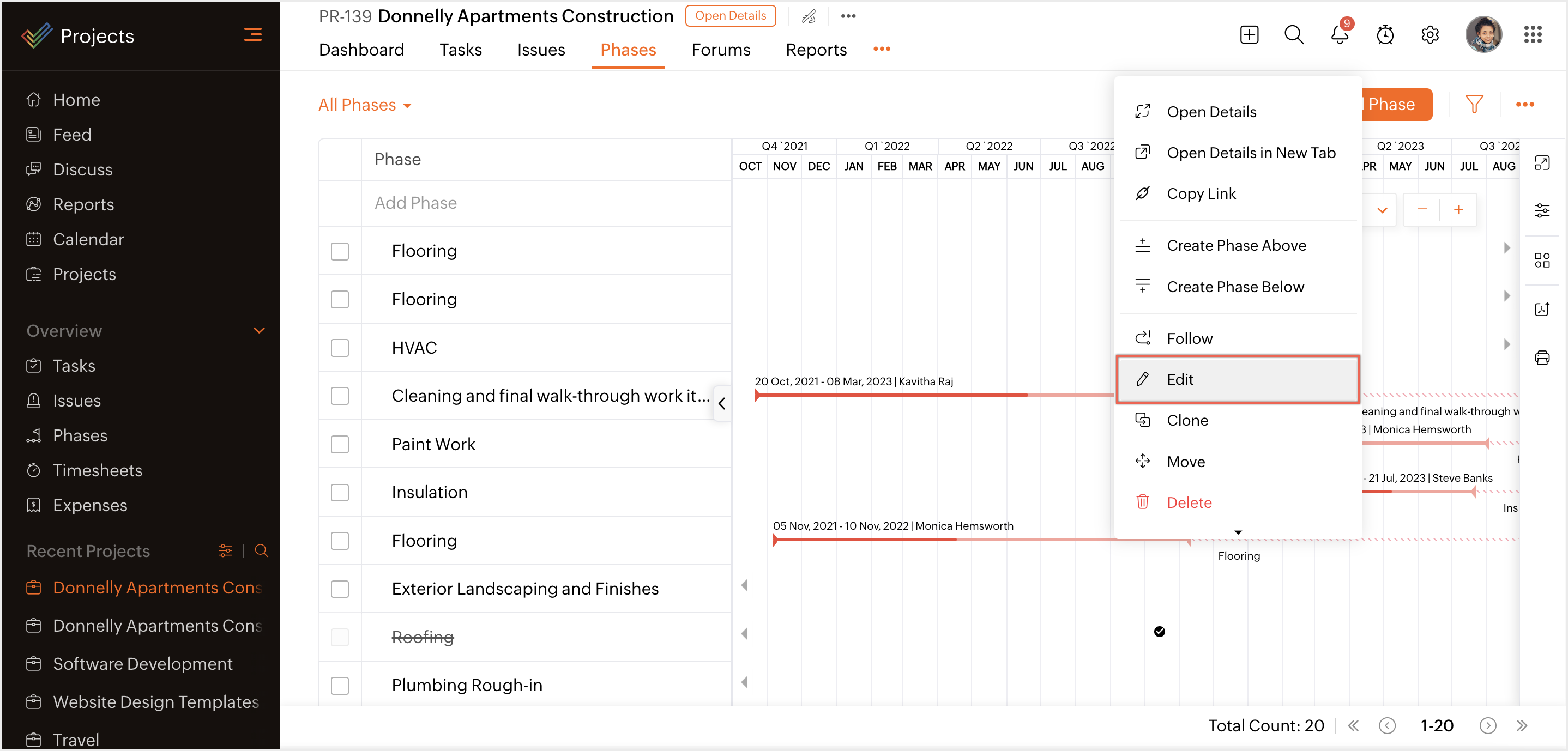 Milestones have been renamed to phases. Phases are goal based targets in a project. Users can break a project down into multiple phases to easily manage and track it to completion. Benefits Track, sort, and filter Phases based on your requirements ...
