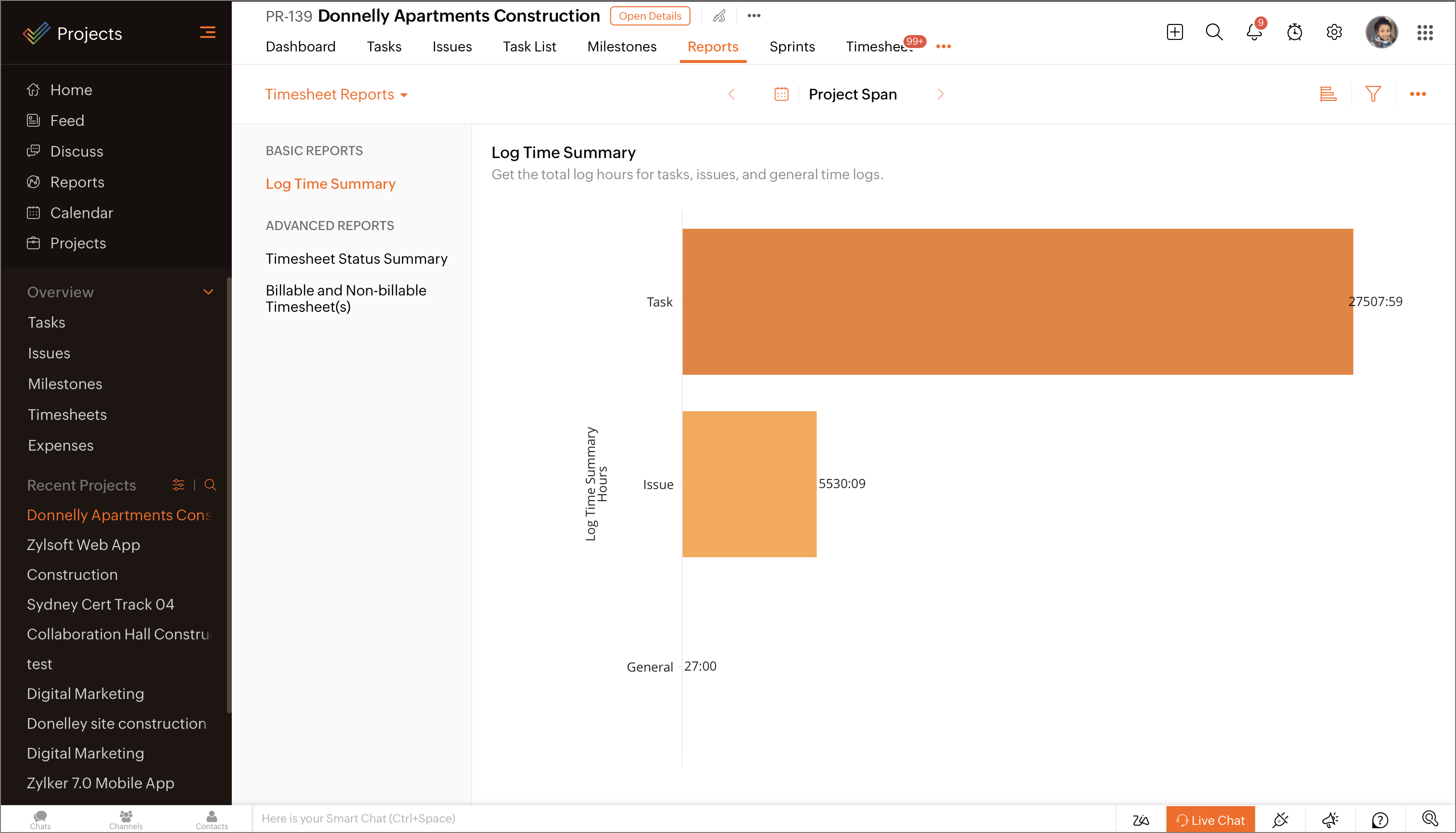 Project Level Time Log Reports | Online Help | Zoho Projects