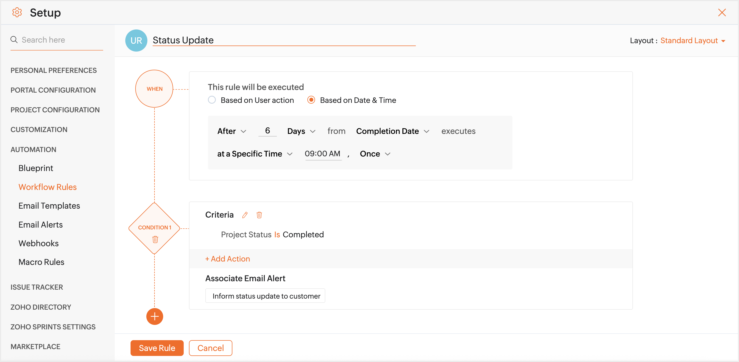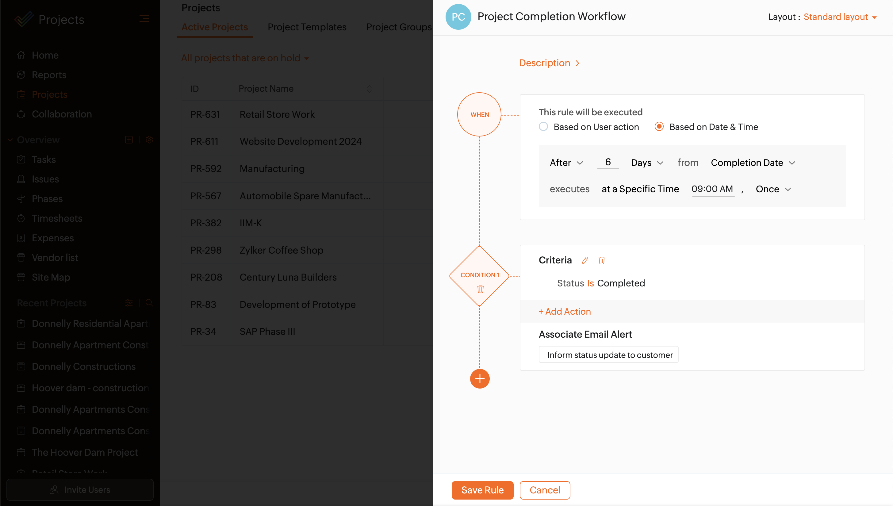 Time Based Workflow Rules for Projects | Online Help | Zoho Projects