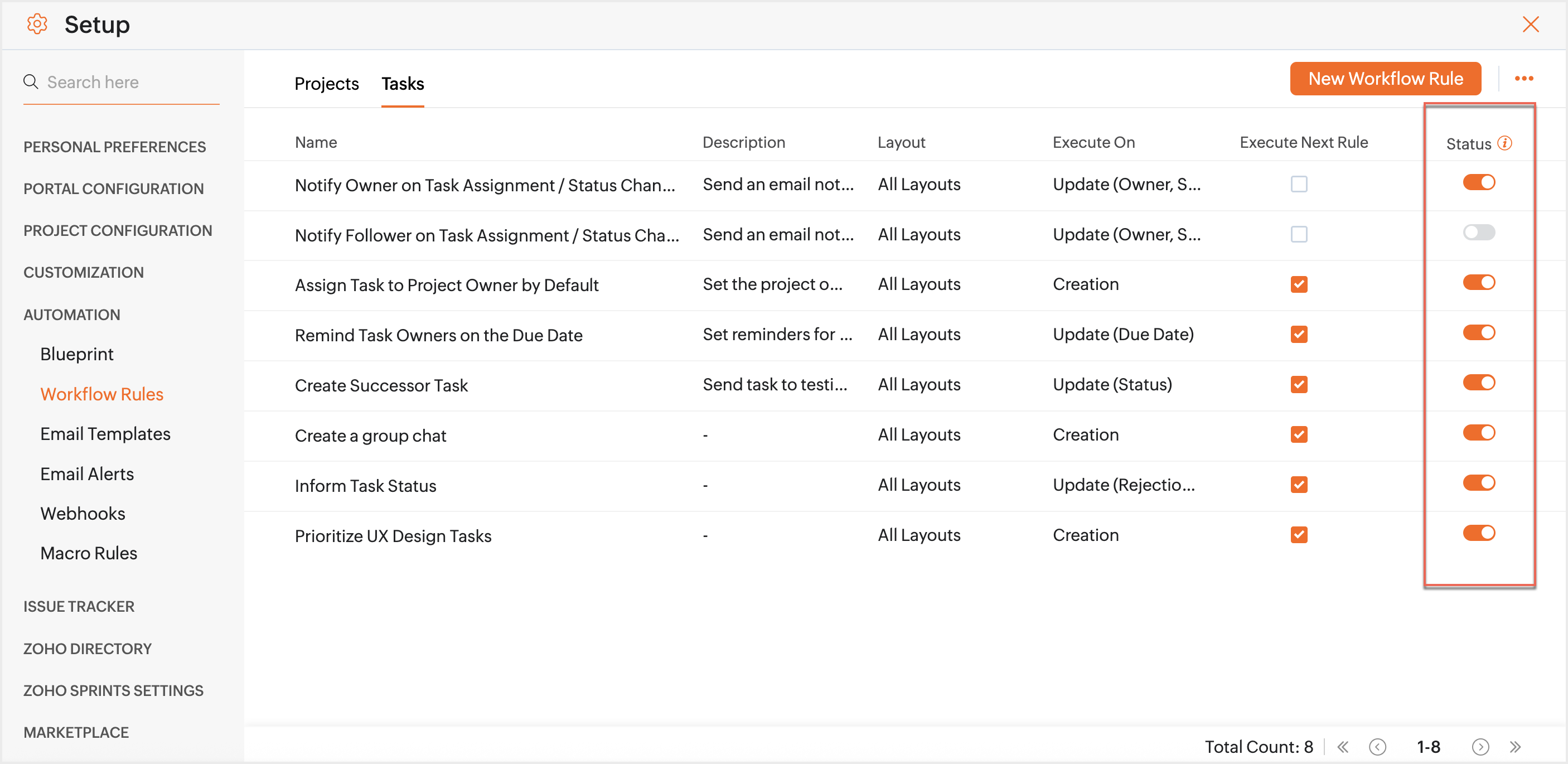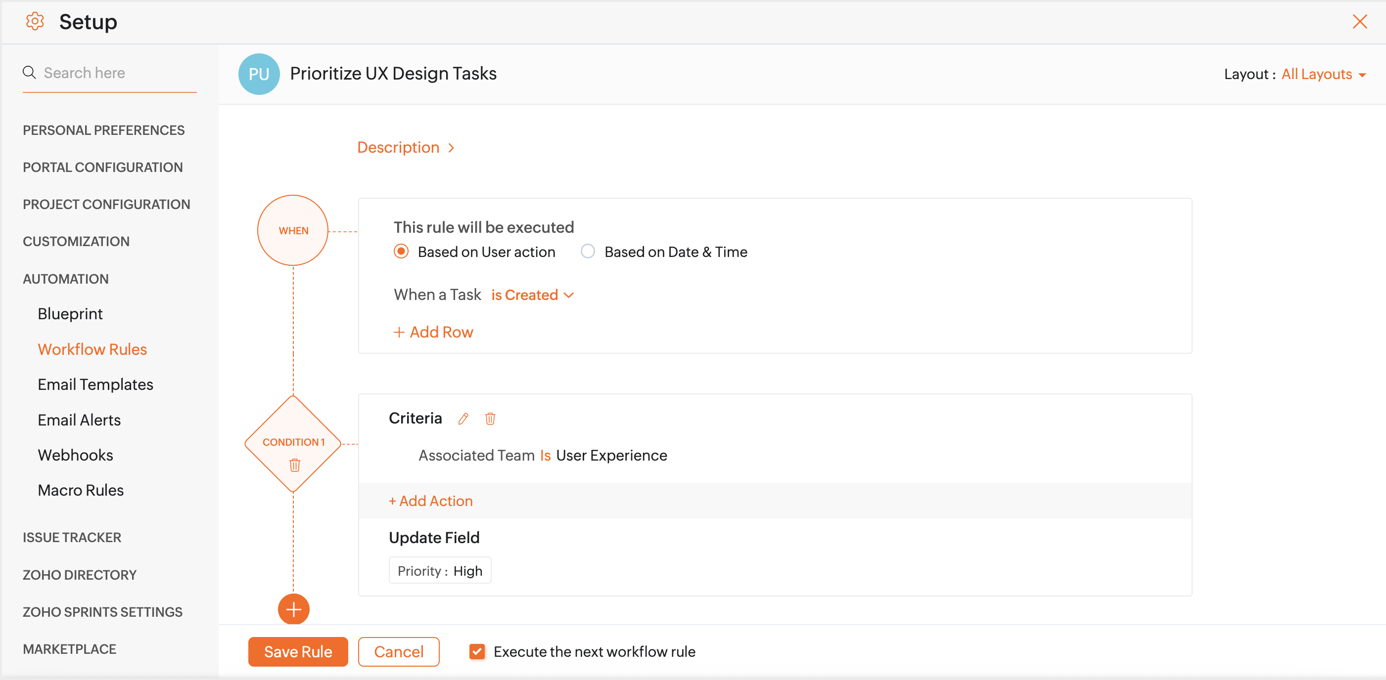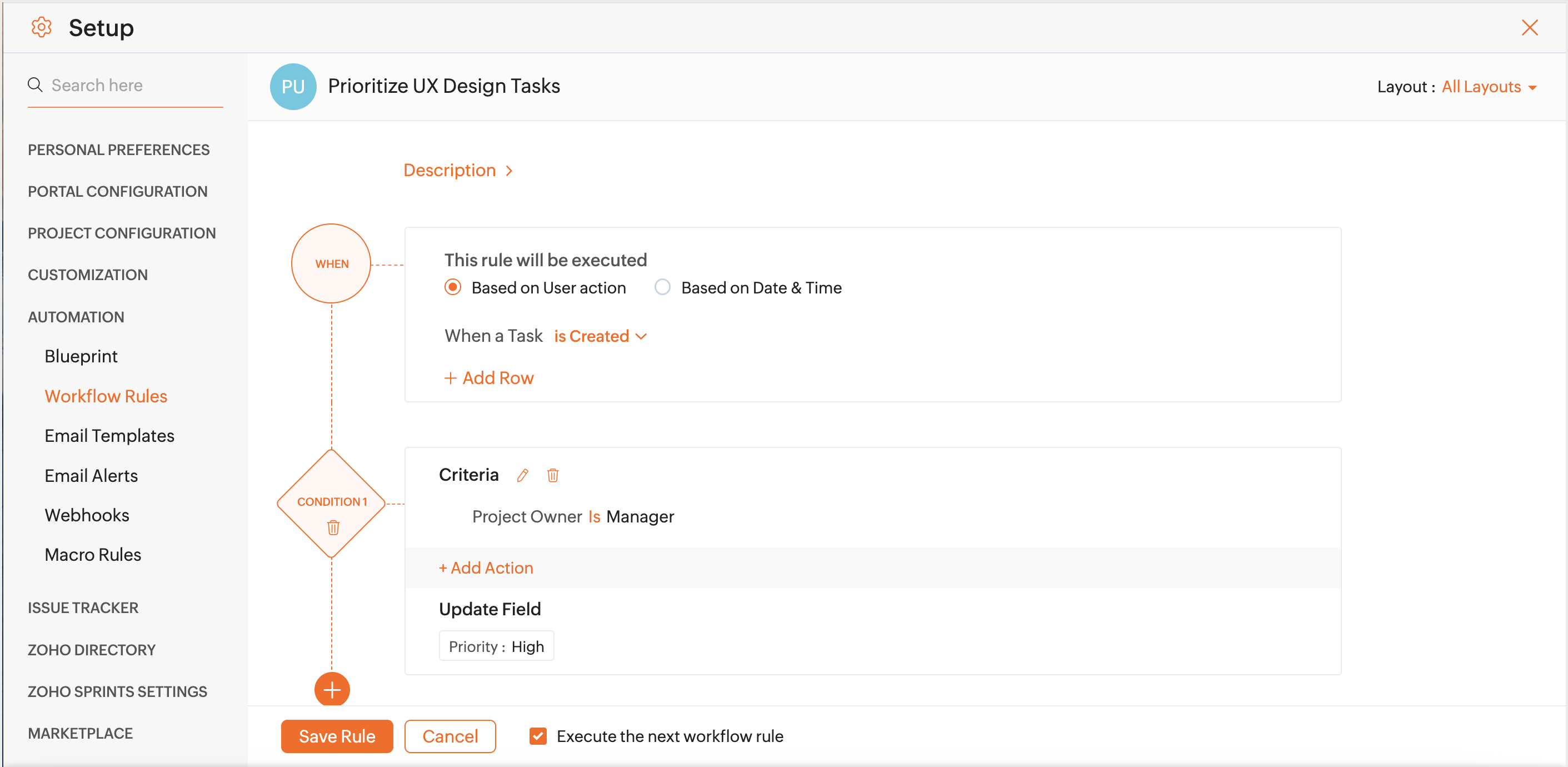 Workflow Rules for Tasks | Online Help | Zoho Projects