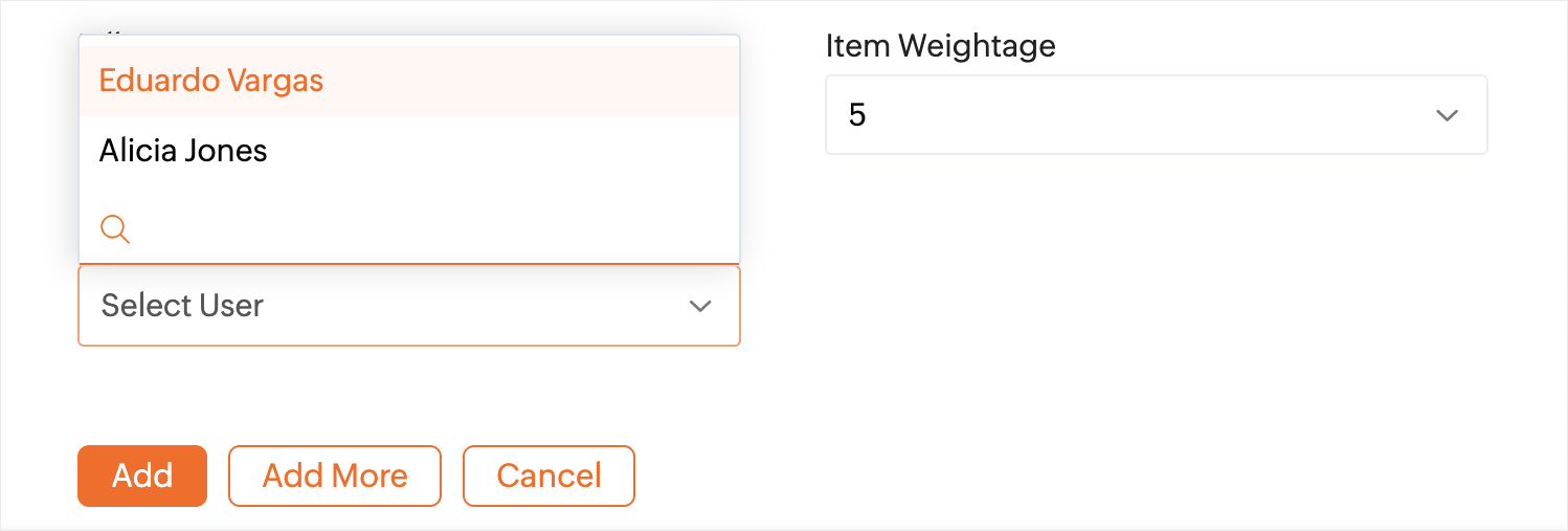 When adding a task or updating a task, if the Item Weightage is set to 5, only these selected users will be shown in the Sr Supply Chain Managers field.