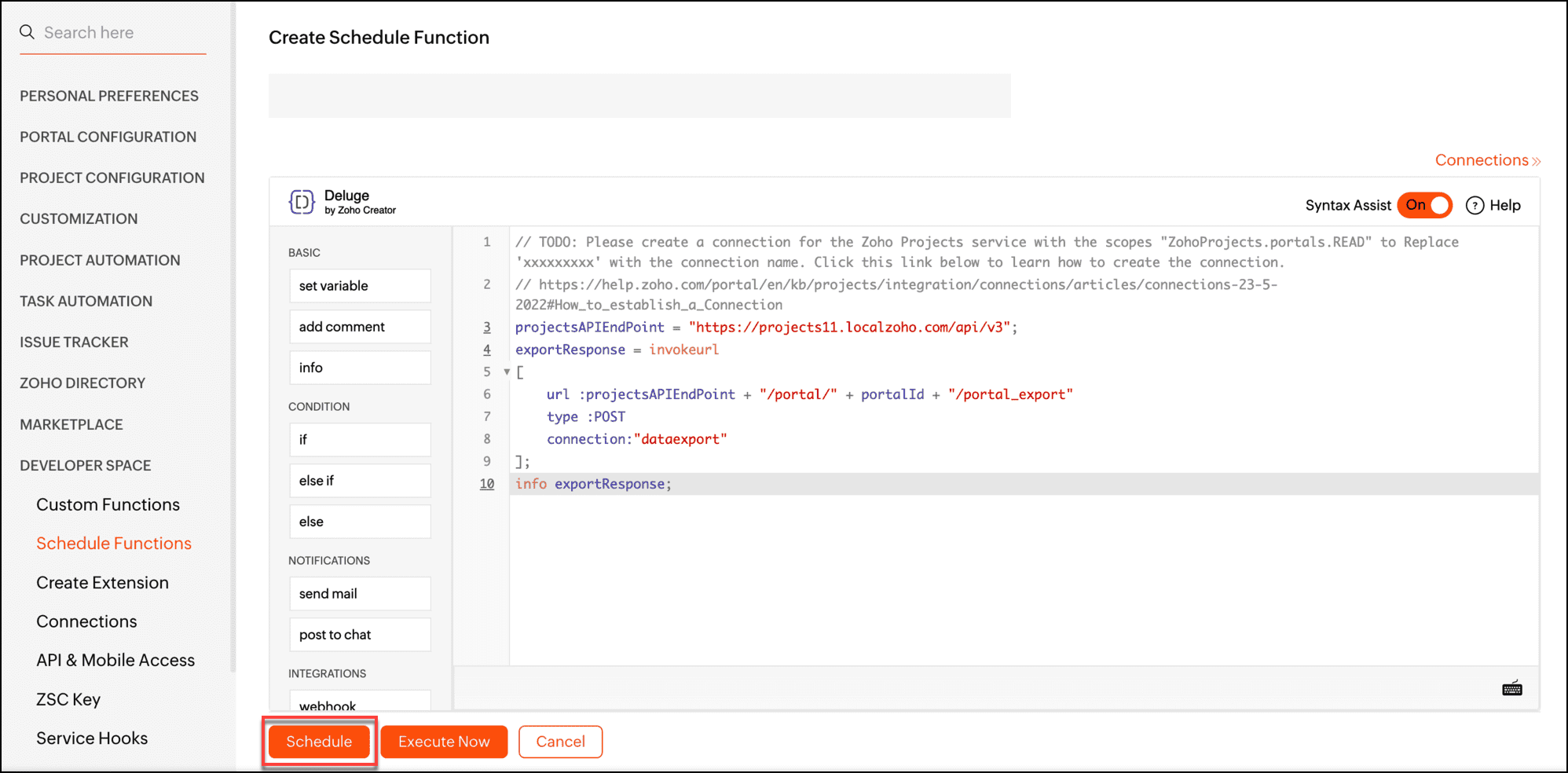 // TODO: Please create a connection for the Zoho Projects service with the scopes "ZohoProjects.portals.READ" to Replace 'xxxxxxxxx' with the connection name. Click this link below to learn how to create the connection.