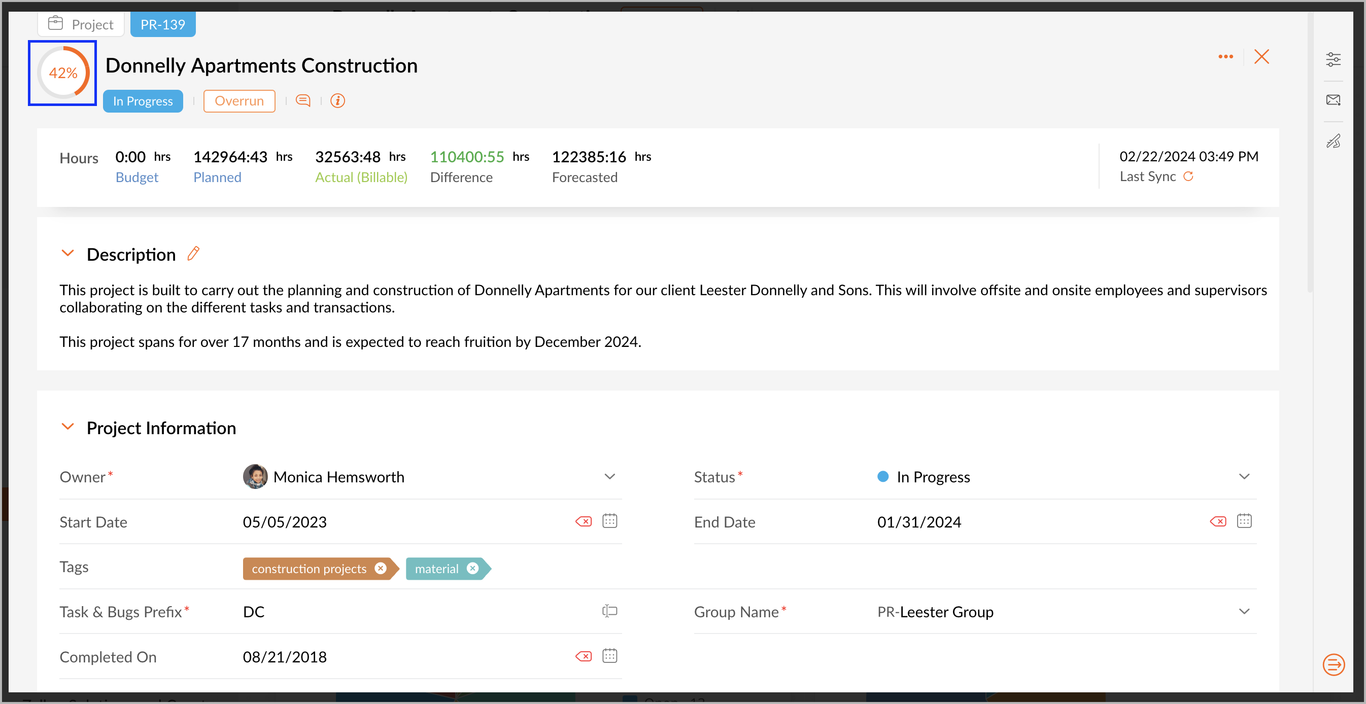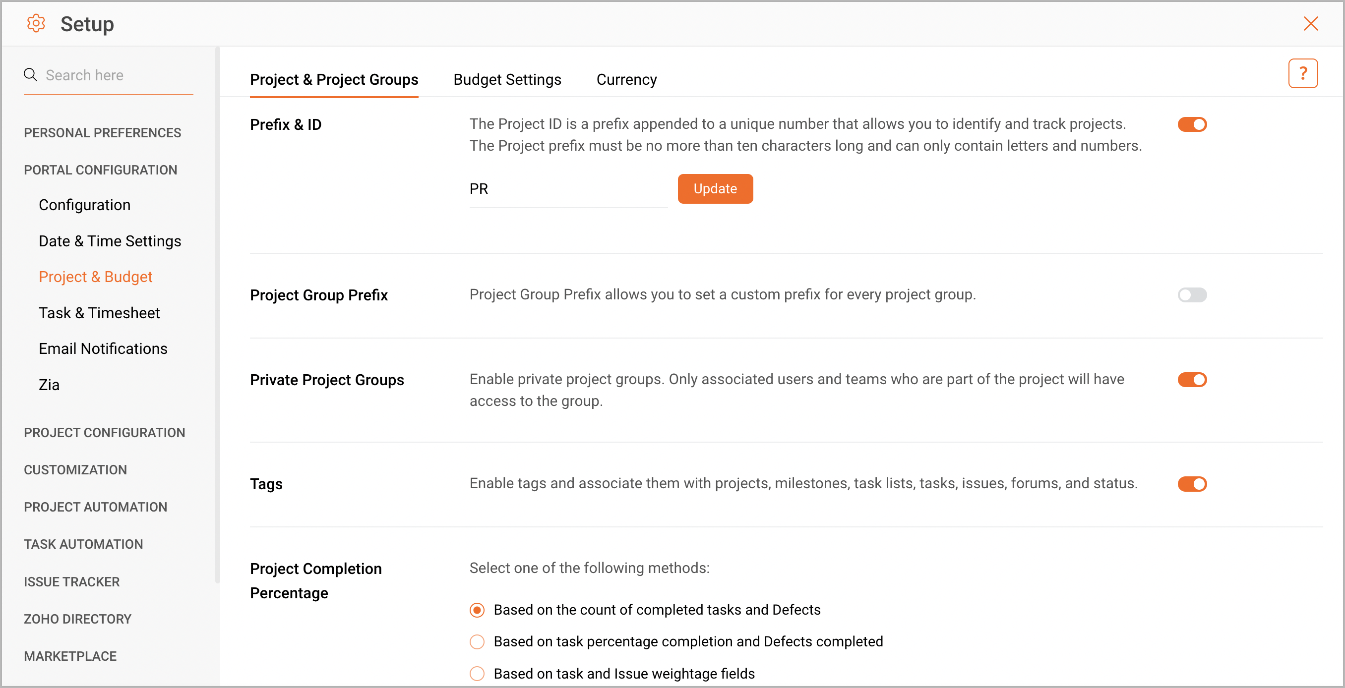 Based on weightage field - Users can customize the weightage for each task and issue. The project completion percentage is calculated based on the weightage value given in weightage field (numeric field or task duration or work hours).