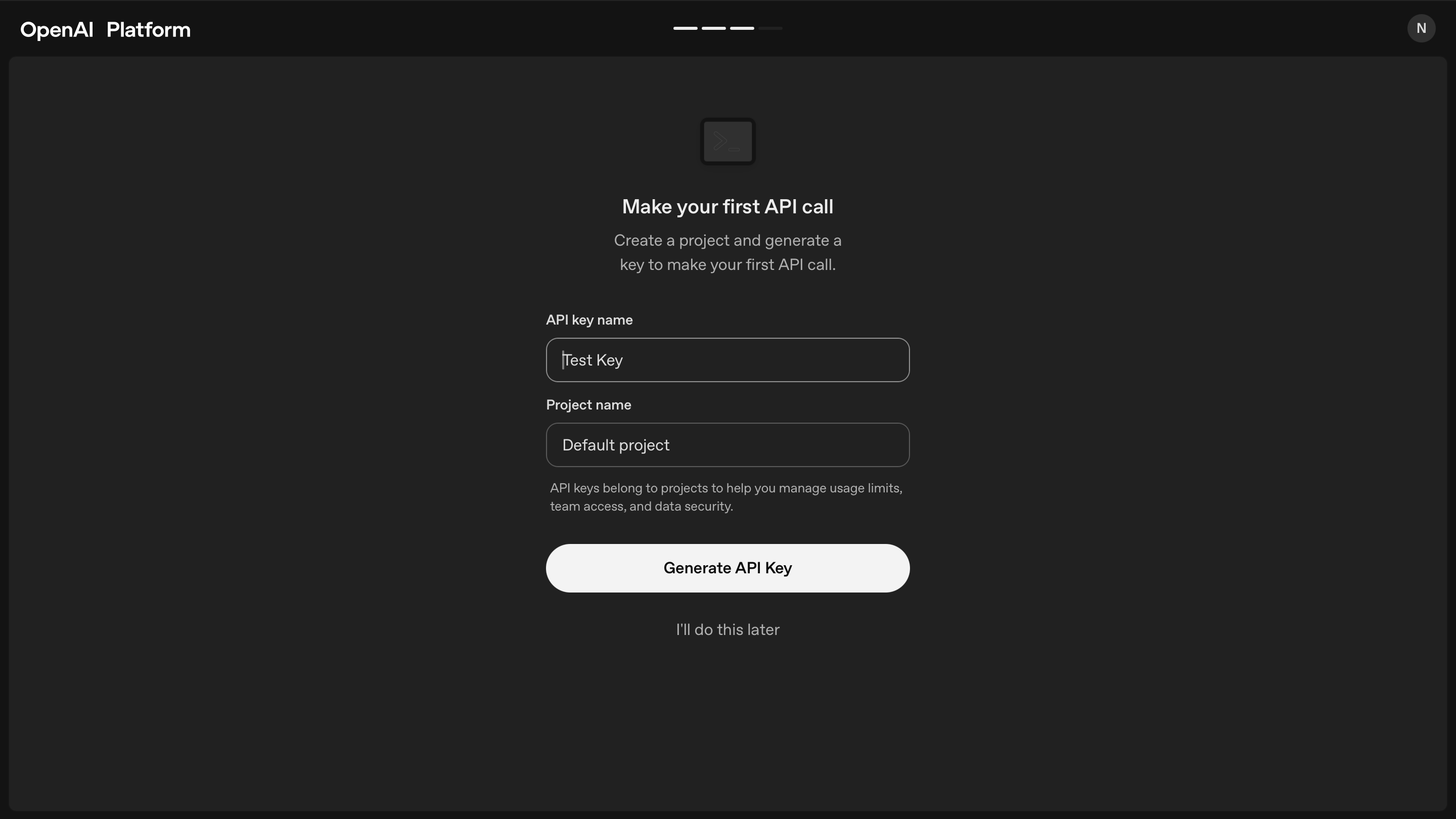 - To generate API key for the AI engine, click on the link below the API key field.