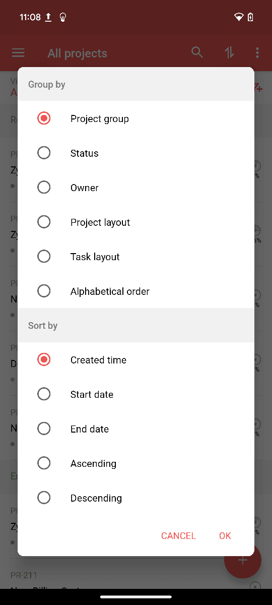 For example, you can group the projects based on the owner and sort the projects based on created time within the group.